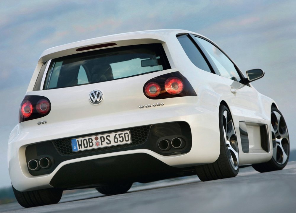 Por último, esta misma generación conoció el Volkswagen Golf GTI W12 Concept, el cual merece una mención. El Wörthersee 2007 fue el escenario elegido por la firma alemana para presentar este prototipo tan radical. Sobre la base del Golf V instalaron un kit de carrocería específico que le permitía aumentar sus cotas de forma considerable, aunque el plato principal se escondí en su interior. Un motor W12 de 6.0 litros biturbo con 650 CV se encargaba de catapultarlo de cero a 100 km/h en 3,7 segundos, así como de alcanzar una velocidad punta de 325 km/h. Evidentemente, jamás pasó de su fase conceptual.