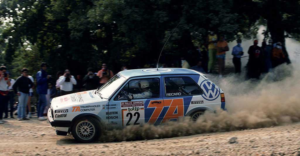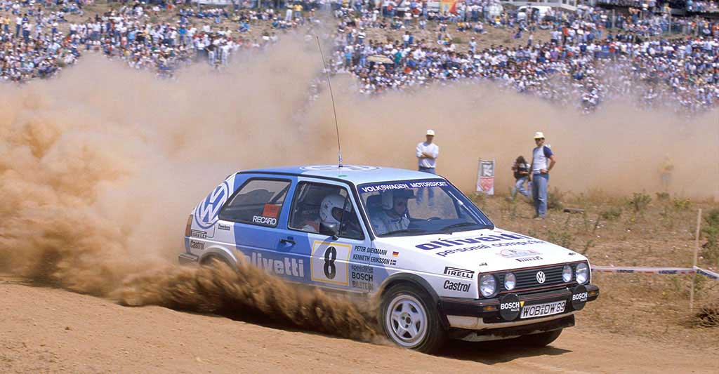 Cuando el Campeonato Mundial de Rallyes pasaba por la transición forzosa debido a la prohibición de los monstruos vehículos del Grupo B, en 1986 Volkswagen decidió arremeter con un Golf GTI MKII equipado con las especificaciones obligatorias del entonces: chasis reforzado, suspensión especial, bácquets y arneses de seis puntos, jaula de seguridad especial e, incluso, un extintor. ¿Qué lograron por aquel entonces? Ni más ni menos que el campeonato mundial de aquel año, superando a coches más preparados y con tracción total, y todo debido a su peso de 900 kilogramos. Mientras otros equipos contaban con cien mecánicos, Volkswagen se las daba de héroe y tenía solo quince. La firma dejó el Golf GTI con un lugar asegurado en la historia.