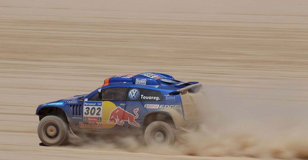 No se puede hablar de la historia de Volkswagen y pasar por alto el Touareg, SUV que se introdujo exactamente veinticinco años después de la victoria de la marca en el Oasis Rally (la primera histórica en Rally Raid). Su diseño, no está demás recordarlo, es totalmente distinto a del modelo que se hallaba en los concesionarios. Eso sí, estaba equipado con el motor turbodiésel de 2.500 cc y 260 CV. No es la primera vez que los propulsores diésel entran en la competición -recuerda que a la vez Audi enseñoreaba de Le Mans con el R8 LMP), pero la apuesta era por una razón lógica: el bajo consumo que permitía más autonomía.