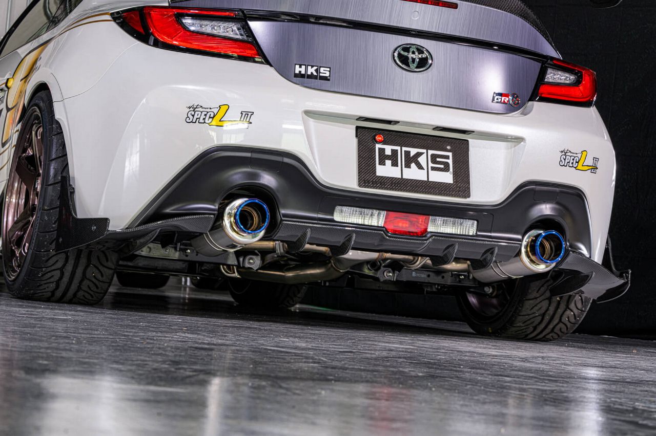 El HKS Toyota GR 86 también recibe otras mejoras mecánicas que incluyen el sistema de escape Hi-Power Spec L II, que solo tiene 0,5 mm de grosor y colas de titanio, para rebajar el peso y añadir más potencia aún; y la suspensión tipo coilover HKS Hipermax S.