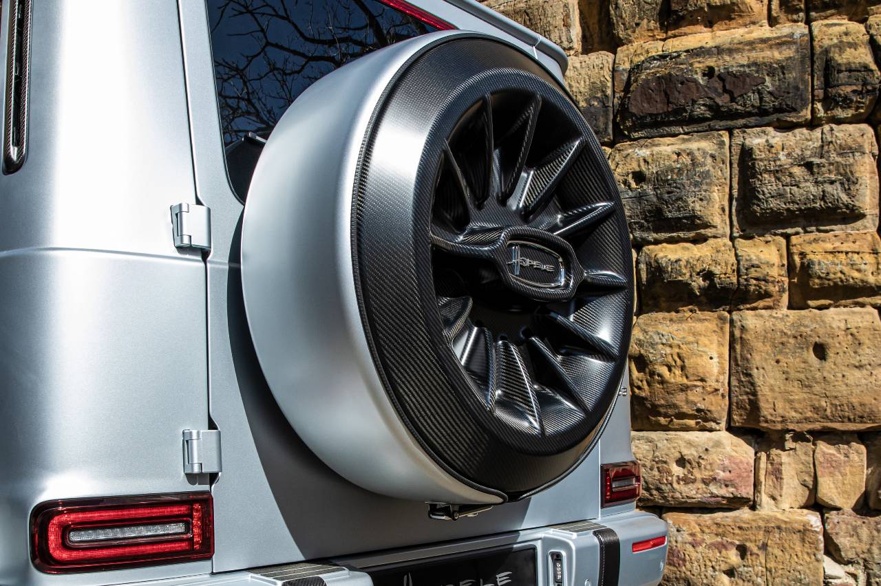 Empezando por el exterior, la parrilla delantera es específica, de serie tiene un acabado cromado claro, pero en esta ocasión está terminada en ‘Liquid Black Chrome’. También calza unas llantas de aleación forjada de 24 pulgadas de diámetro y diseño ‘Cross Spoke’. Por último, la carrocería tiene un acabado ‘Moonbeam Silver’ que se combina con múltiples elementos en carbono mate expuesto.