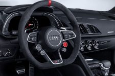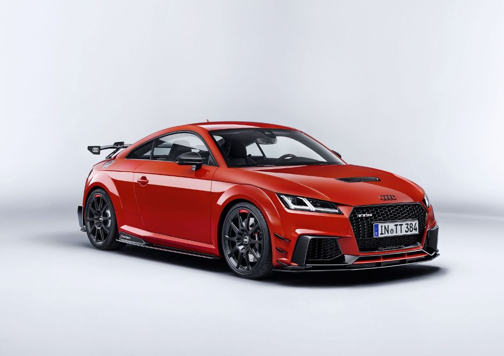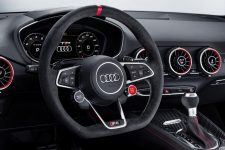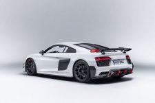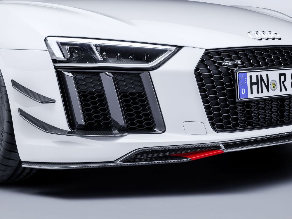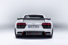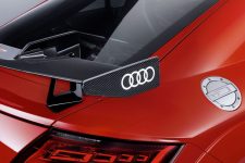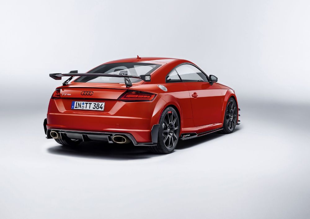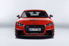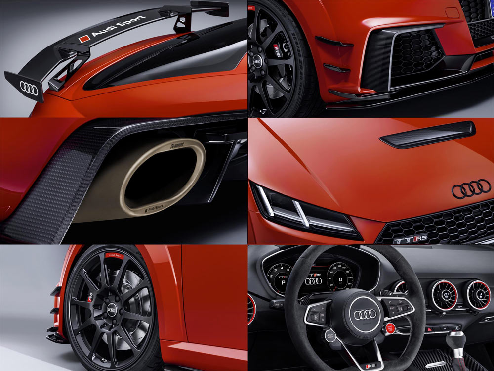 Acompañando al Audi TT Clubsport Turbo Concept estará la versión de competición del Audi R8 LMS, de competición pero que comparte más de un 50% de sus piezas con el modelo de calle, así como diferentes vehículos representantes de la gama Audi Sport Performance Parts. Se trata de una nueva oferta de elementos aerodinámicos que mejoran el rendimiento del Audi TT RS y del R8, vehículos a los que se les puede acoplar. Apéndices, alerones y hasta un exclusivo sistema de escape firmado por Akrapovic son las ‘chucherías’ que puedes comprar para dar un plus a los coupé biplaza de la compañía de Ingolstadt.