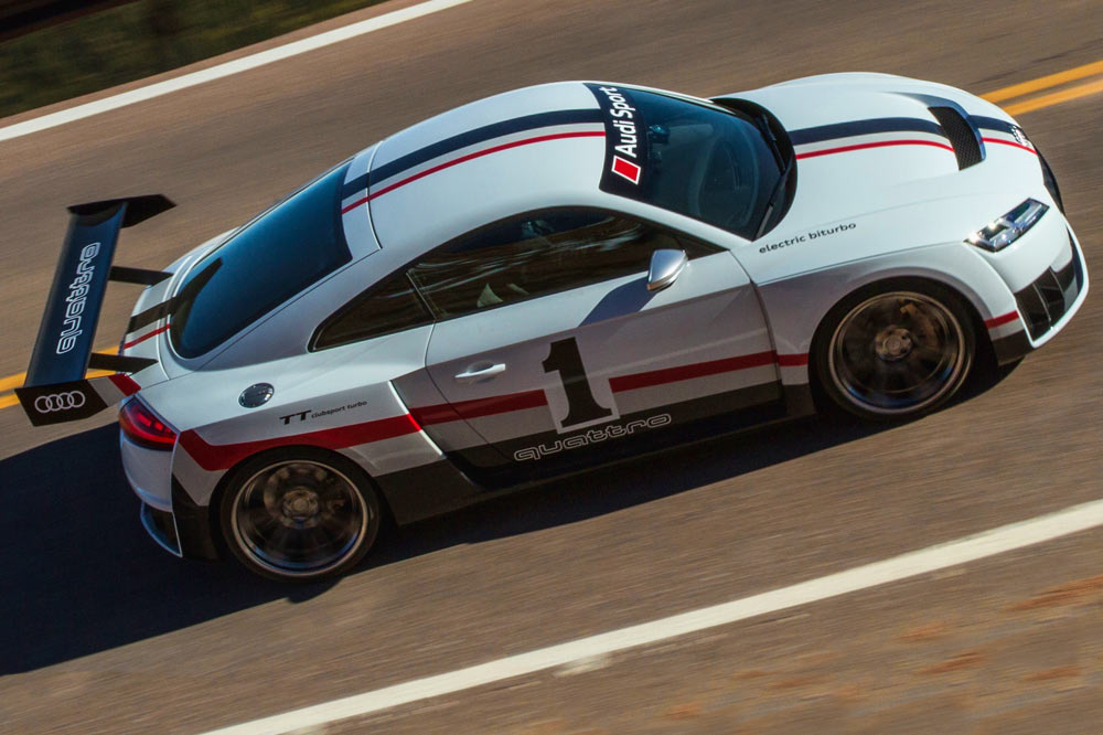 Ha sido el SEMA 2017 la cita escogida por Audi para rescatar el no menos impresionante TT Clubsport Turbo Concept, prototipo mostrado en el Wörthersee de 2015, pero al que se le ha vestido con los característicos colores del Audi 90 IMSA GTO. Es 16 cm más largo y 14 cm más ancho respecto al TT RS (prueba). También recibe cambios en el motor, porque el 2.5 TFSI tiene una potencia de 600 CV y un par motor de 650 Nm entre las 3.000 y 7.000 rpm logrados gracias al turbo convencional y al eléctrico, que para evita el lag. Puede acelerar de 0 a 100 km/h en 3,6 segundos y alcanzar los 310 km/h, cinco segundos más lento que el 90 GTO pero la misma punta.