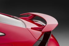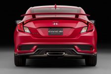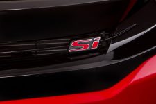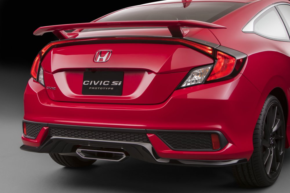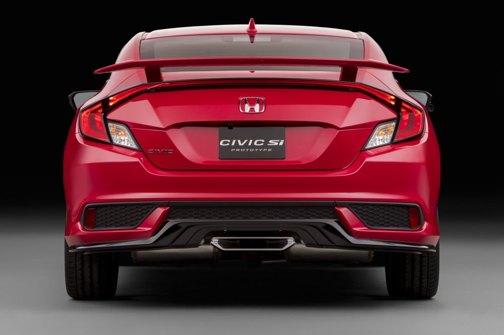 El Honda Civic Si Prototype está terminado en Rallye Red Pearl y el kit de carrocería incluye un splitter delantero y un alerón trasero, así como una salida de escape poligonal situada en el centro de la defensa posterior. Un set de llantas de aleación de 19 pulgadas con neumáticos de alto rendimiento y un diseño de diez radios completan el conjunto.