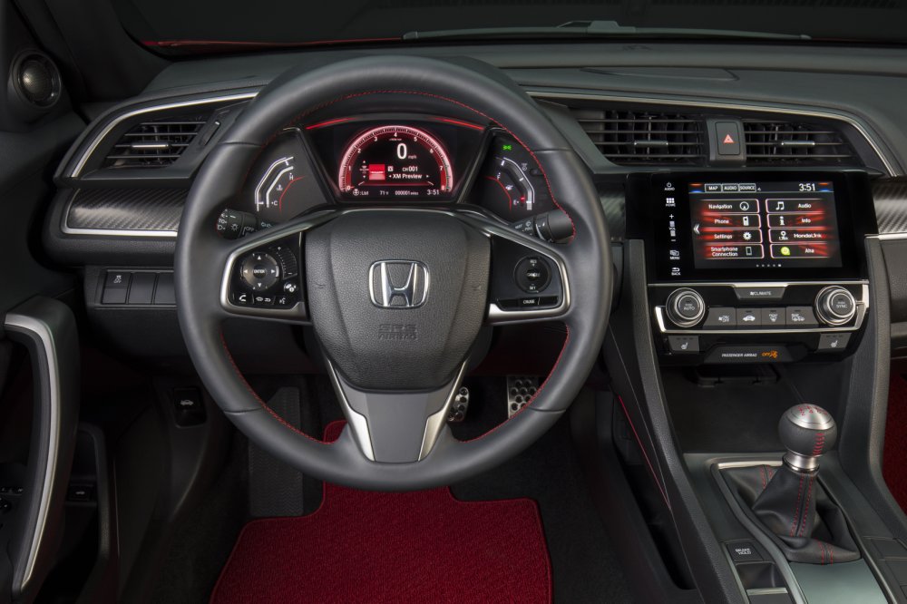 El interior del Civic Si Prototype que debutará en Los Ángeles junto al Honda Civic Type R Prototype, presenta unos asientos deportivos para el Civic Si con costuras en rojo, así como diversos logotipos grabados en ellos. Las costuras están presentes también en las puertas, el volante y el pomo de la caja de cambios de aluminio. Además, una pantalla TFT con diversos medidores, iluminación en el sistema de sonido, pedales de aluminio y un panel de instrumentos específicos también están disponibles en el habitáculo.