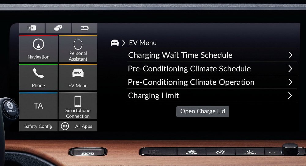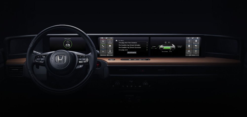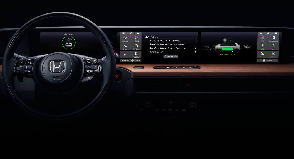 El interior del Honda e Prototype presenta un diseño ‘retrofuturista’ al combinar elementos clásicos como los asientos de tela con una gran pantalla horizontal personalizable que integra la mayoría de las funciones del vehículo. Las dos pantallas del sistema Camera Mirror están integradas en ambos extremos del tablero de instrumentos e incluso el espejo retrovisor central ha sido reemplazado por una cámara.