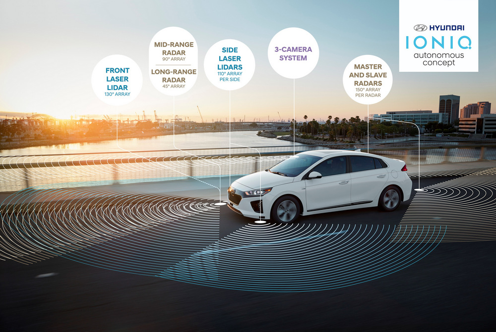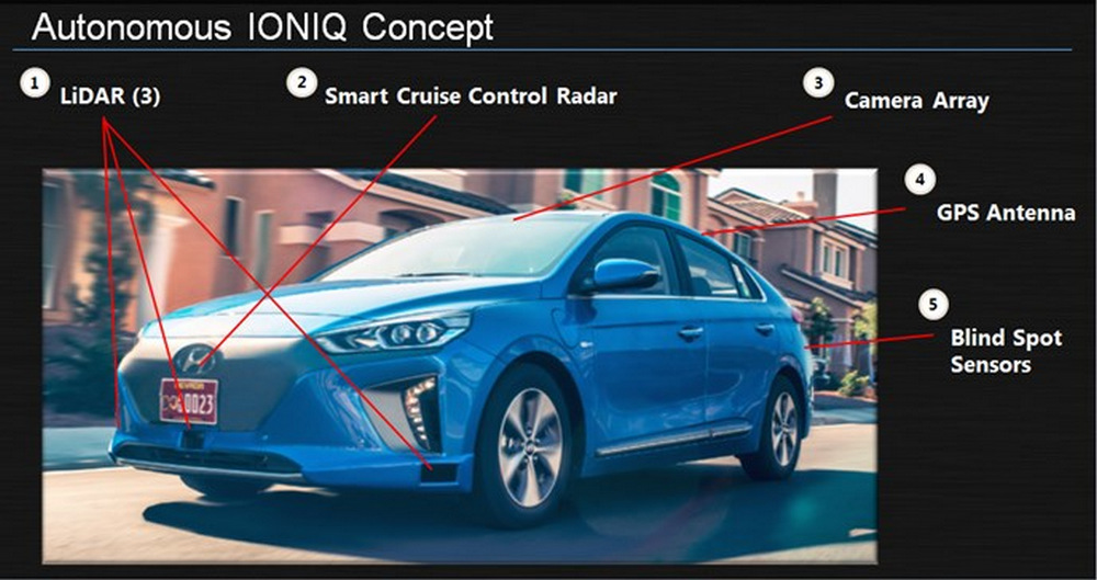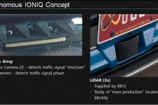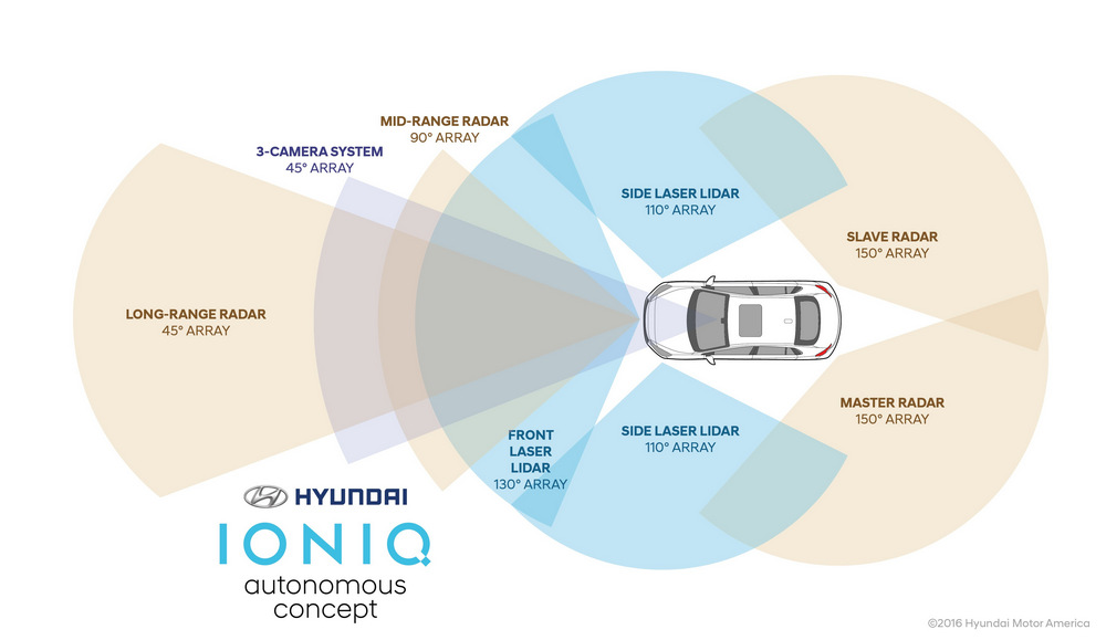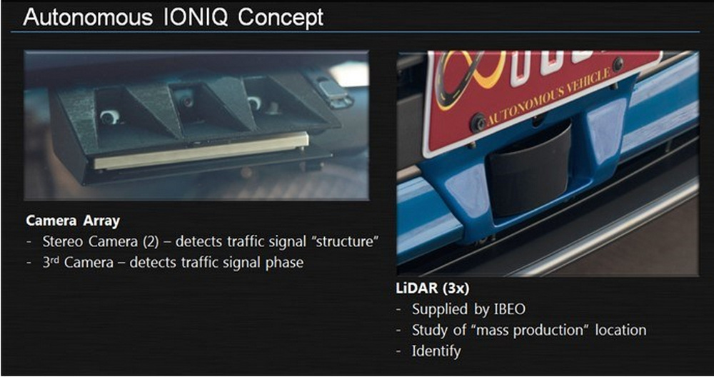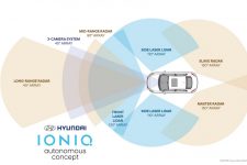 Para evitar problemas a la hora de cambiar de carril, este prototipo también cuenta con un radar que detecta la presencia de vehículos en los ángulos muertos de los retrovisores. Hyundai quiere con el Autonomous Ioniq Concept, que está basado en el nuevo Hyundai Ioniq, desarrollar una tecnología y un sistema operativo que requiera menos potencia para su funcionamiento que el de sus rivales. Esto les permitiría reducir costes y poner la tecnología de conducción autónoma al alcance de más conductores.