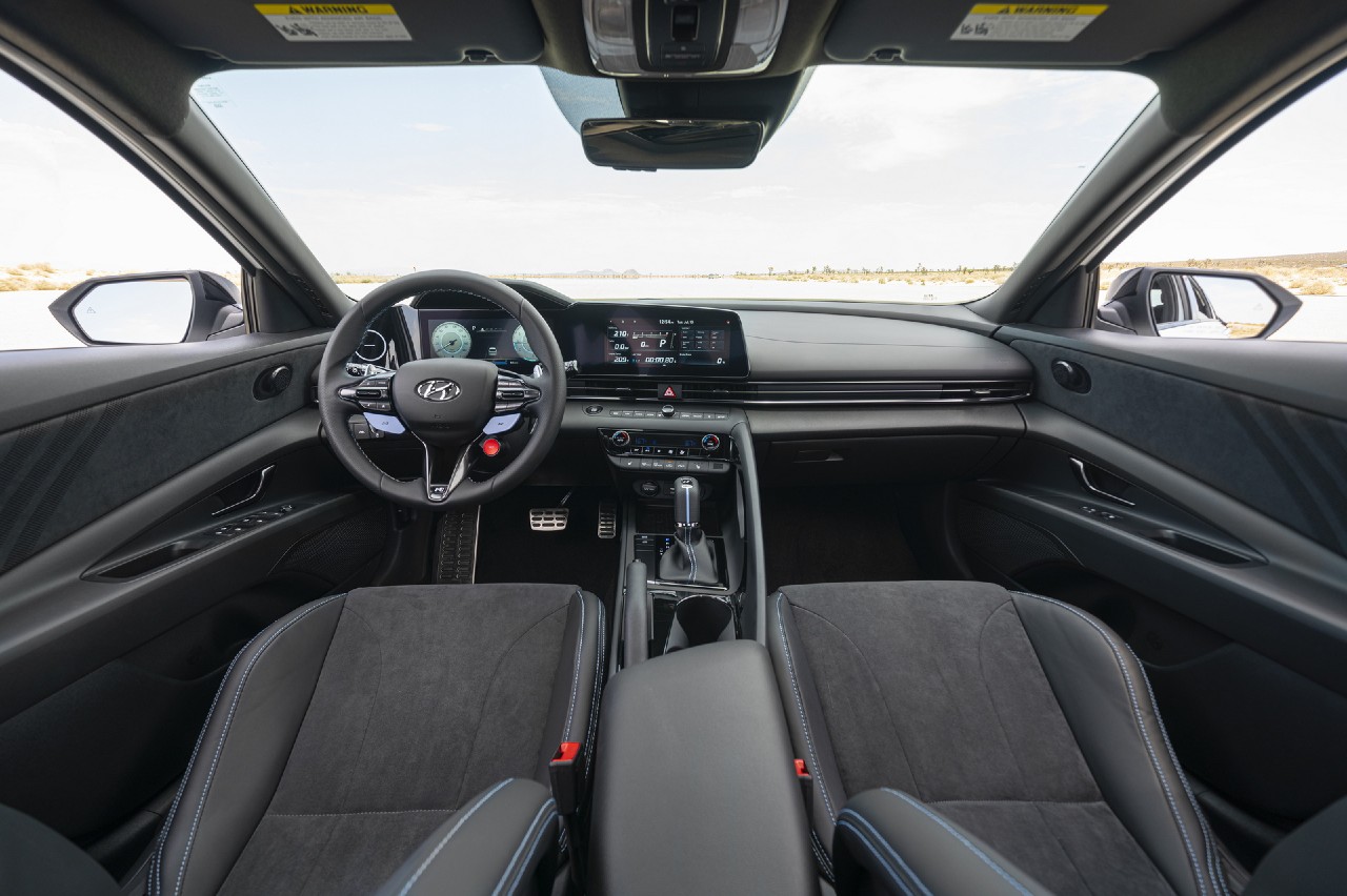 Y es que como ocurre con otros integrantes de la familia N, el Elantra tiene un estado normal y uno potenciado. En su forma base su motor 2.0 turbo desarrolla una potencia de 280 CV y un par máximo de 391 CV, pero activando el NGS la cifra aumenta hasta 290 CV “forzando” el turbo y aguantando en ese modo 20 segundos. Además, Hyundai ha optimizado los tiempos de refresco del NGS a solo 40 segundos, para poder emplearlo con más asiduidad.