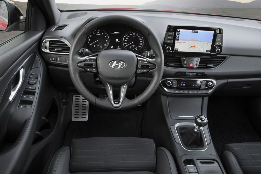 Las llantas de aleación, por primera vez de 18", y los paragolpes han sido diseñados tomando como referencia el N -estos últimos cambian la franja decorativa en color naranja por una plateada-. Asimismo, equipa una chapa identificativa i30 N Line en las aletas delanteras y un silenciador doble, instalado para producir un sonido más atractivo. No podemos olvidar los neumáticos PS4 Michelin Performance, ni los nuevos discos de freno delanteros aún más grandes.