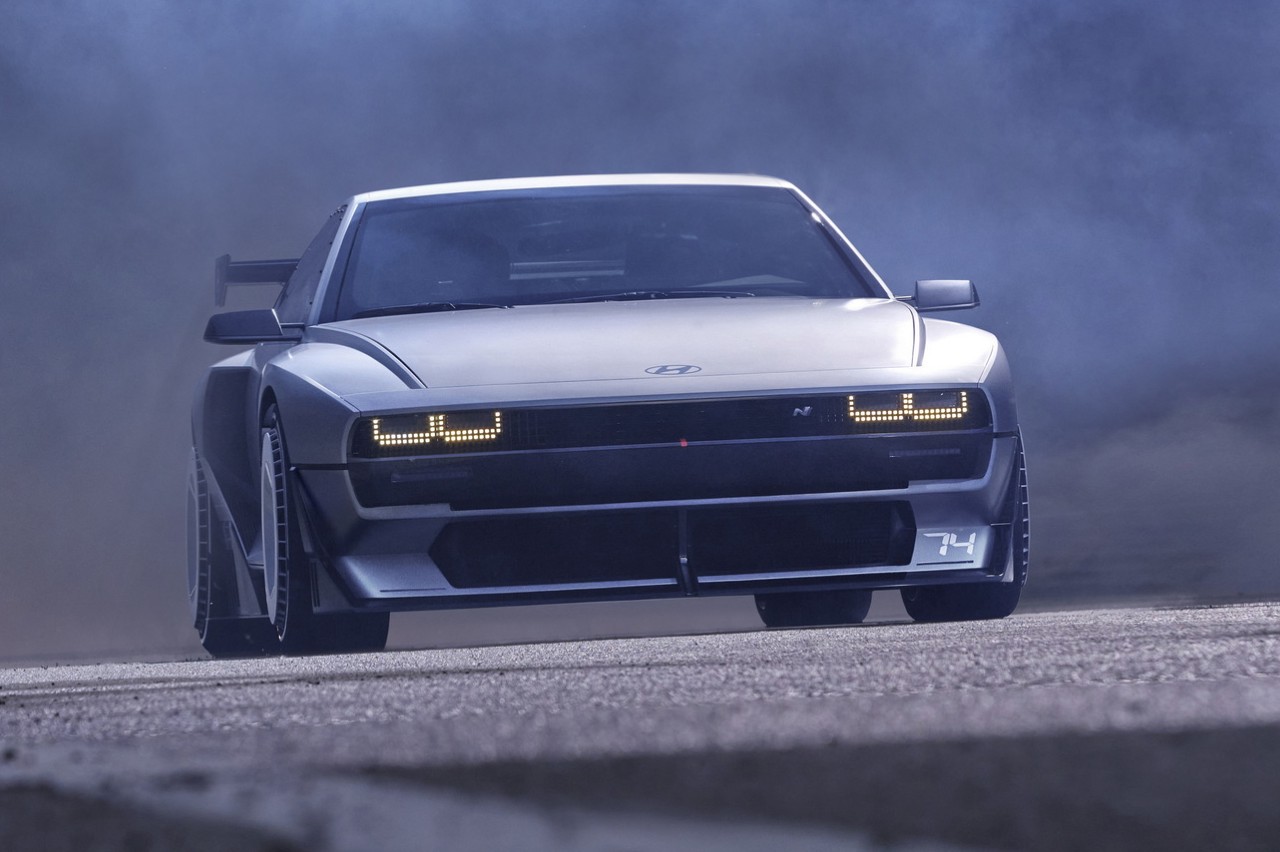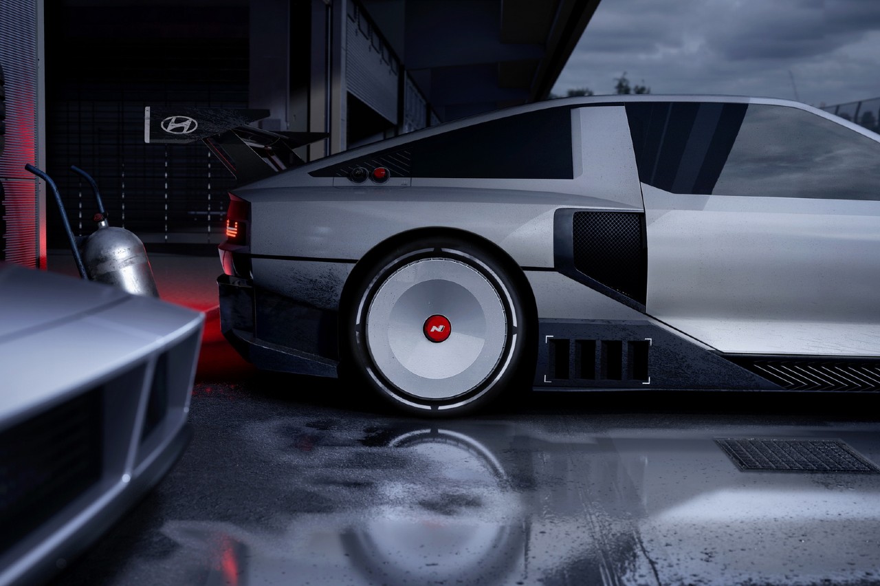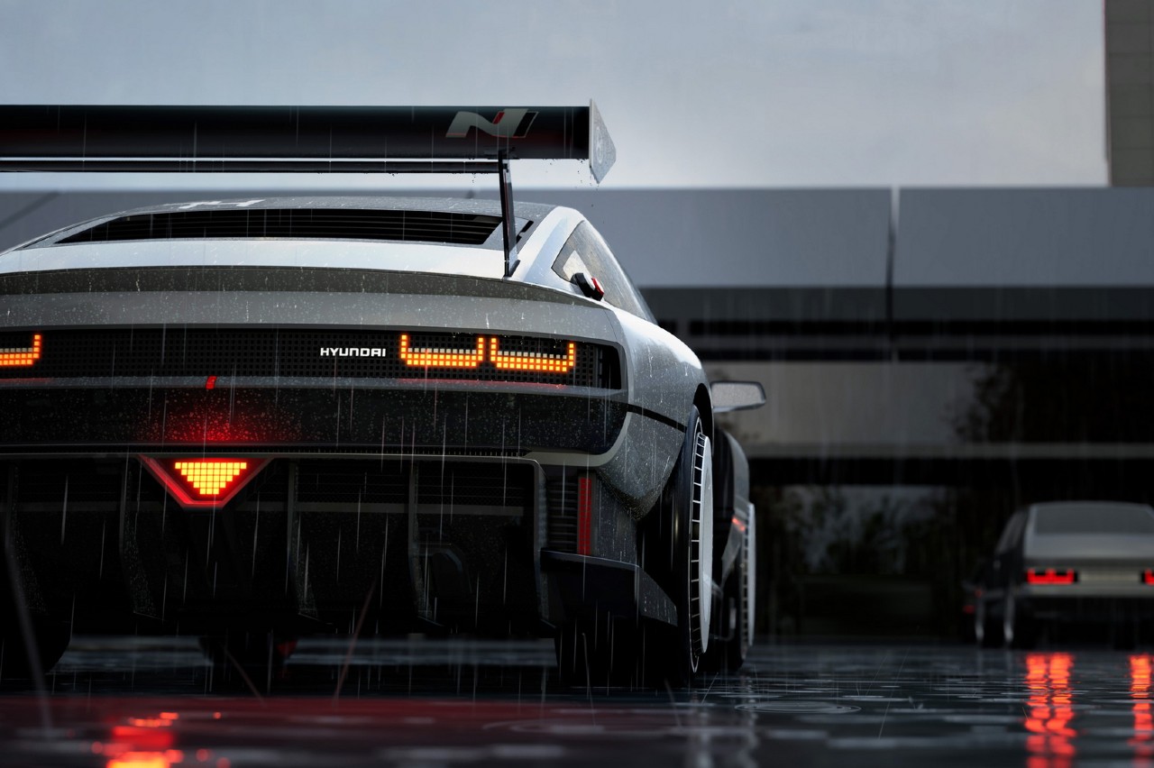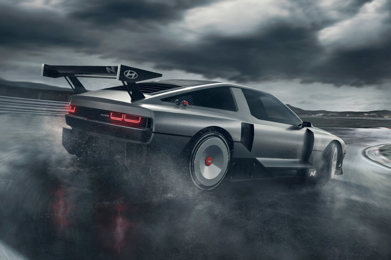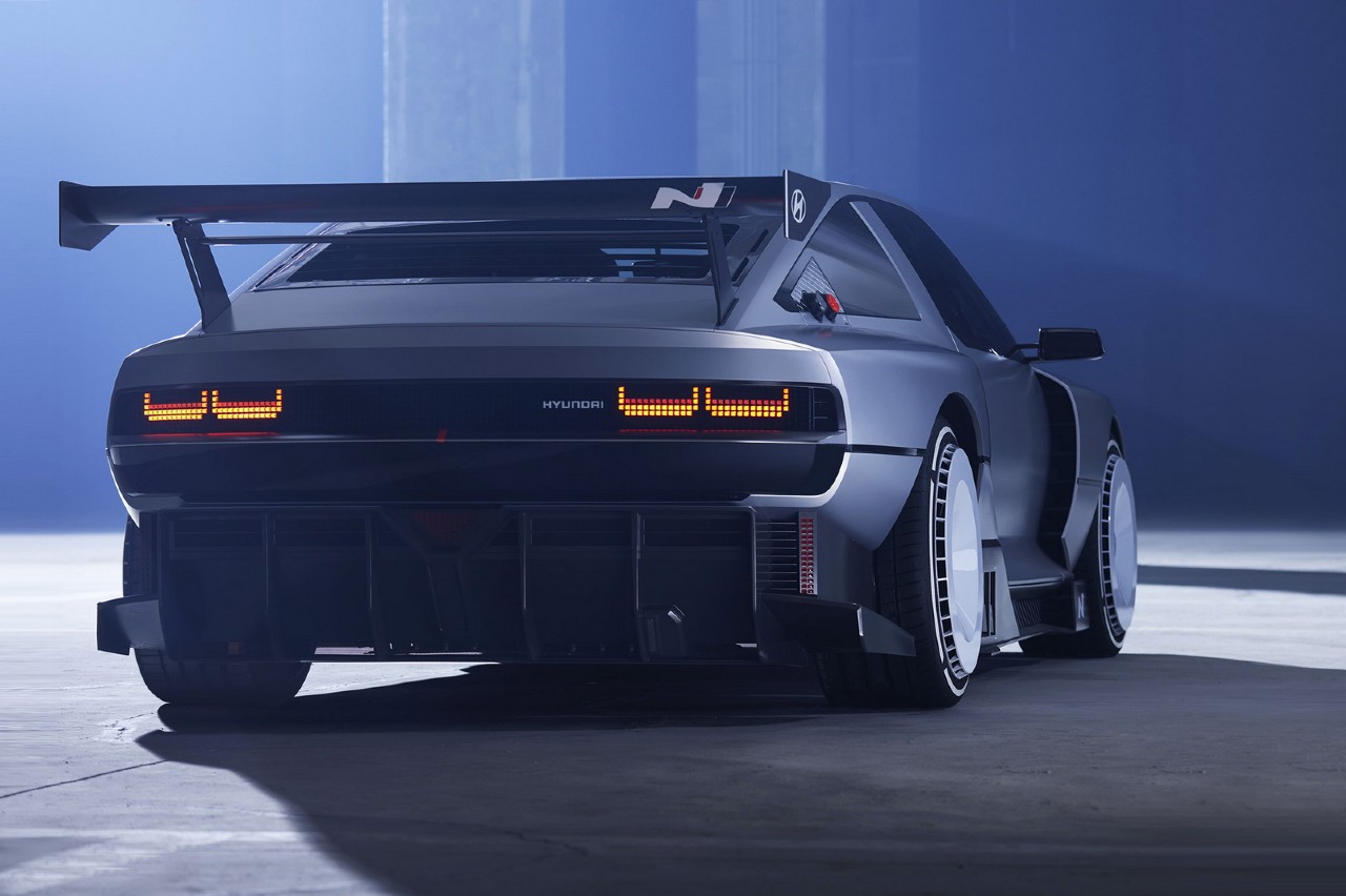 Ahora, el deportivo se reivindica en una versión moderna de corte retrofuturista, de angulosas líneas y esbelta silueta. Con detalles de la familia Ioniq, como es el conjunto frontal con los grupos ópticos, pero con un diseño propio en el que tienen cabida los pasos de rueda ensanchados, las grandes tomas de aire, un voluminosos alerón o unas llamativas llantas sin radios.