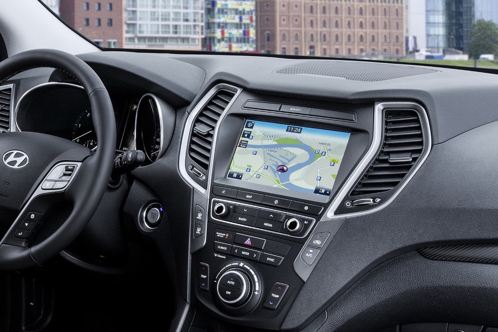 Dando el salto al habitáculo, el Santa Fe 2016 introduce una nueva pantalla más grande y con nuevos controles para el sistema de información y entretenimiento, mientras que el fabricante coreano asegura que se han mejorado los materiales que componen el habitáculo, otorgándole mayor calidad y sensación al tacto.