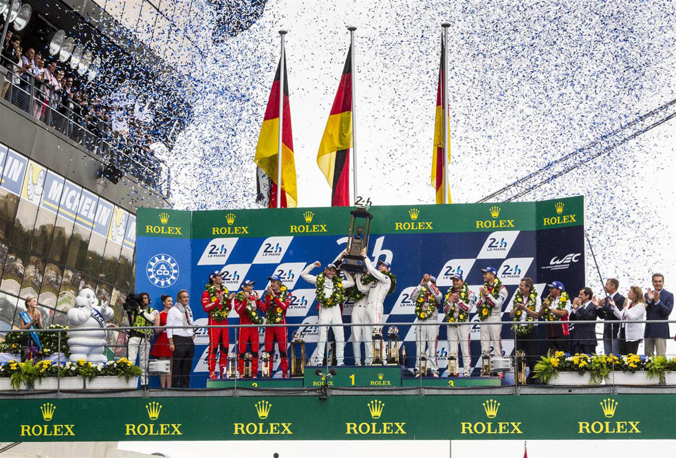 El Porsche 919 Hybrid con el número 19 completó 395 vueltas al circuito de la Sarthe, de 13.629 metros de longitud, desde que a las 15.00 horas del sábado se diera la salida. Tras él, el Porsche de Timo Bernhard, Mark Webber y Brendon Hartley. Audi, claro dominador en las 24 Horas de Le Mans desde el año 2000 solo pudo subir al tercer peldaño del podio, recompensa recibida gracias al trabajo de Marcel Fässler, André Lotterer y Benoît Tréluyer.