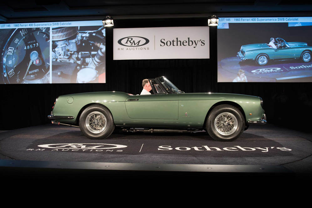 Pero, sin lugar a dudas, lo que más atractivo tiene son las subastas de coches clásicos. Llevadas a cabo por RM Sotheby’s, asociación creada por RM Auctions y Sotheby’s, han alcanzado los 60.3 millones de dólares (55.727.554 euros). De entre todas ellas han destacado tres, la del Ferrari 400 Superamerica SWB Cabriolet de 1960, que fue subastado por 5.896.215 euros, récord para el modelo; la del Ferrari 599 GTB 2007 con cambio manual, que alcanzó los 630.285 euros, el triple de su valor original; y la del Porsche 911 Carrera RS 2.7 Touring de 1973, 823.436 euros.