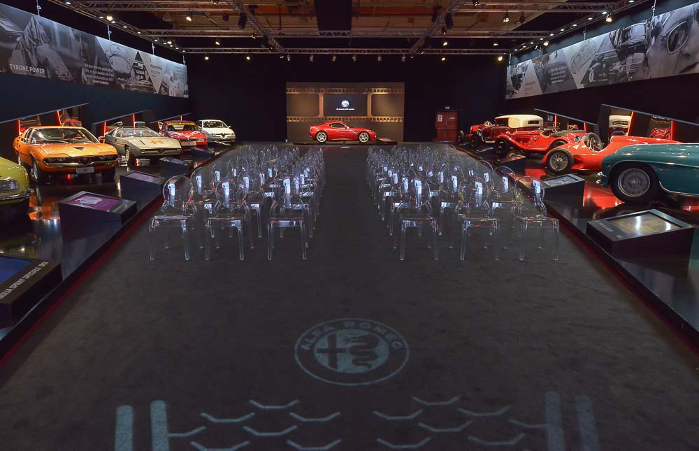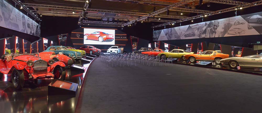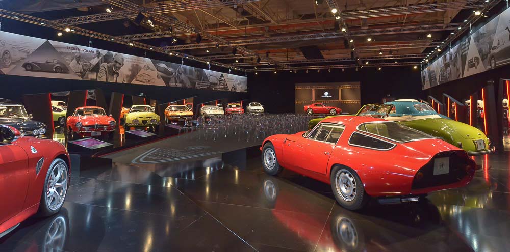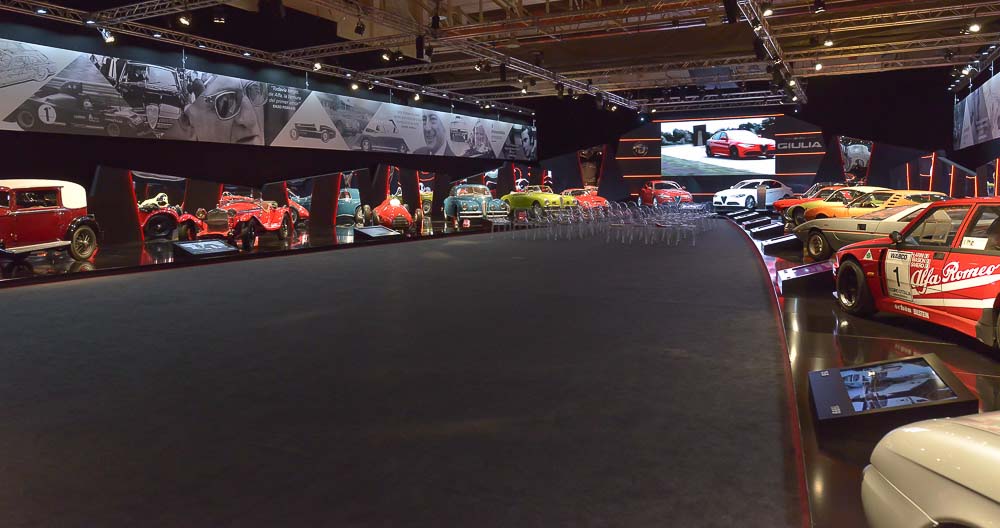 Desde el RLTF del 1924 hasta el Giulia 2016, pasando por modelos que pisan por primera vez España, como por ejemplo el GP Tipo 512, uno de los primeros monoplazas de la historia del automovilismo en contar con un motor en disposición central. Acompañando a este vehículo en el que formó parte en su desarrollo el ingeniero español Wifredo Ricart, han estado los elegantes deportivos de preguerra 6C, varios Giulia originales, el Caimano, el espectacular prototipo diseñado por Giugiaro sobre la base del Alfasud; o el Alfa Romeo 75 Turbo Evoluzione, que llegó a competir con sus más de 400 CV de potencia en el campeonato IMSA.