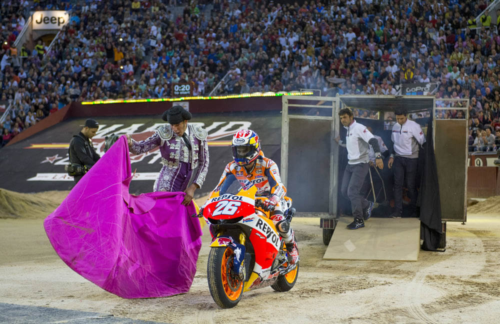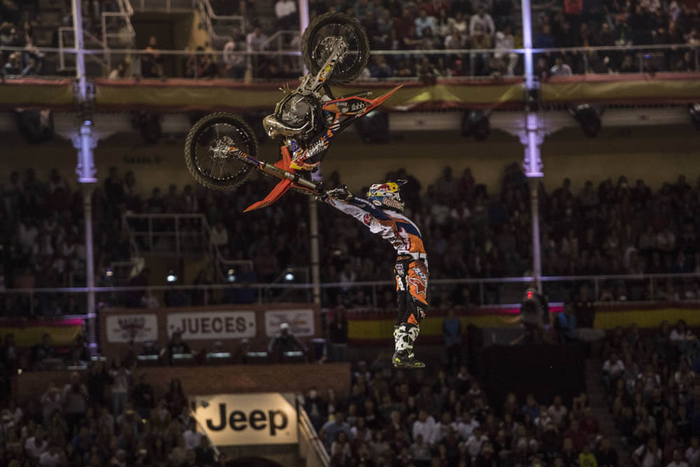 Los cerca de 20.000 espectadores han podido disfrutar, primero con la presencia de Dani Pedrosa, piloto de MotoGP que ha aparecido cual Miura y que ha dado una grata sorpresa a sus fans, y segundo de los espectaculares saltos de los 12 riders: front flip, 540 flair, double backflip, whip… Todo para ganarse a un entregadísimo público y al exigente jurado.