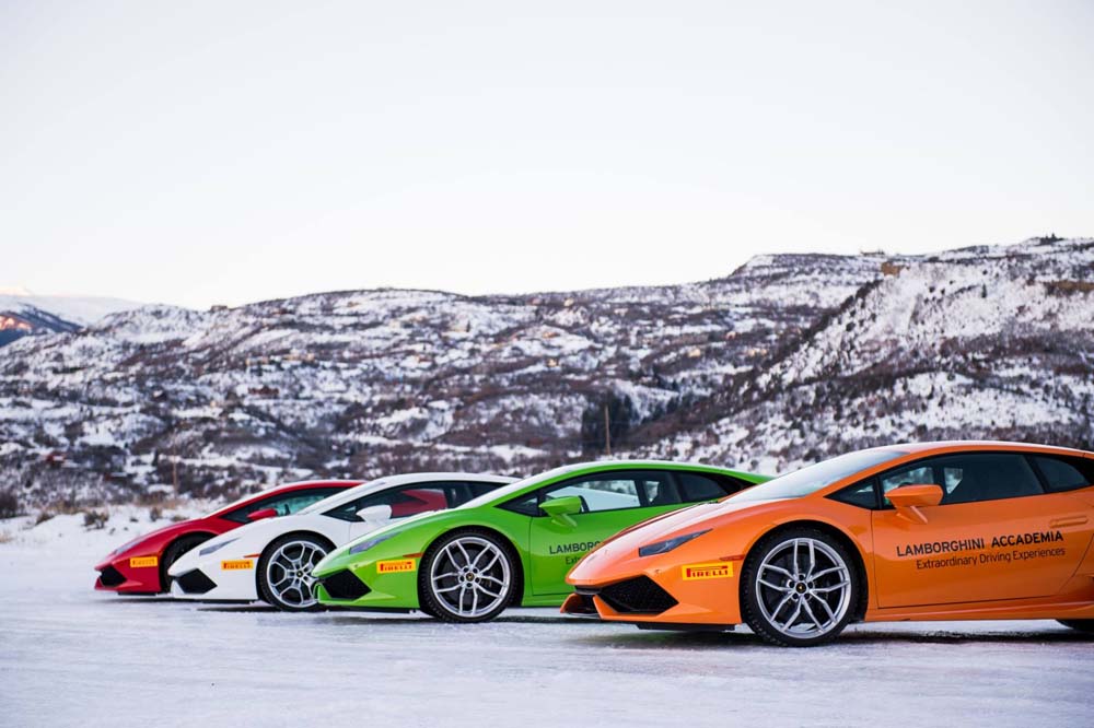 La flota estaba compuesta por un total de 25 vehículos, de los que destacaban el Lamborghini Aventador SV y Huracan LP 620-2 Super Trofeo, equipados con los neumáticos Pirelli Winter Sottozero.
