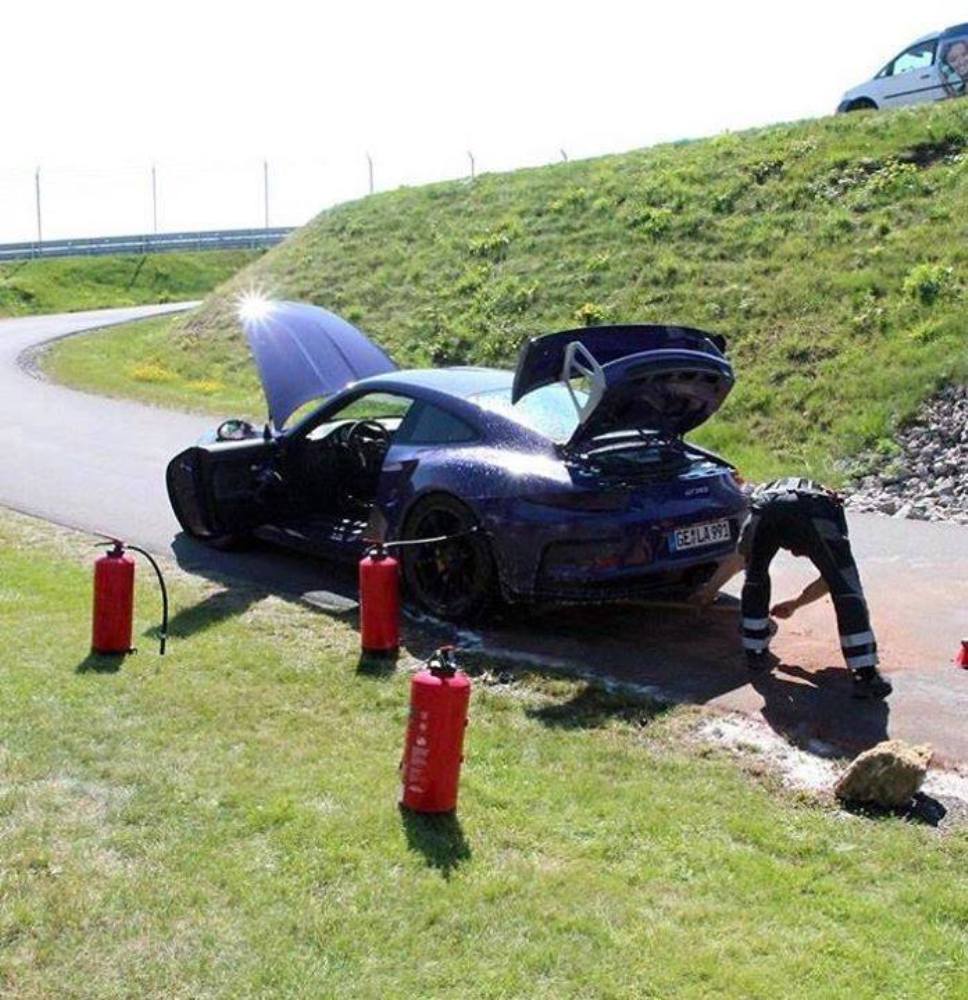 Pocos datos extra se conocen acerca del incidente, pero todo apunta a que se trata de la primera unidad del nuevo 911 GT3 RS que es dañada de esta forma. Aunque por el momento podemos declararlo como un hecho aislado, debemos recordar que el pasado año cuando la firma con sede en Stuttgart lanzó al mercado el 911 GT3, apenas unos meses después una serie de incendios alrededor del mundo obligó a la firma alemana a hacer una llamada a revisión que supuso la sustitución de todos los motores del GT3 de 2014.
