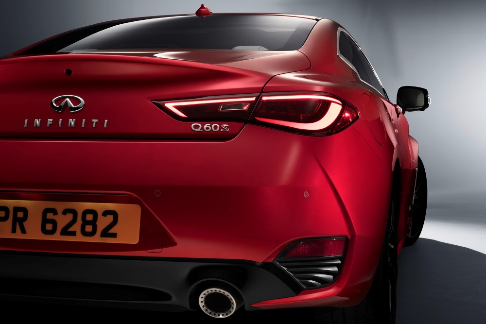 Por su parte, el fabricante con sede en Hong Kong ha logrado que el diseño del Infiniti Q60 Coupé 2017 logre unos más que aceptables 0,28 Cx de coeficiente aerodinámico. Esto ha sido posible gracias a los orificios de ventilación en las aletas delanteras que dirigen el aire al vano motor, mientras que en la variante con motor V6, una parrilla activa permanece cerrada en conducción normal, mientras que si se exige rendimiento al motor, esta se abre para facilitar la refrigeración.