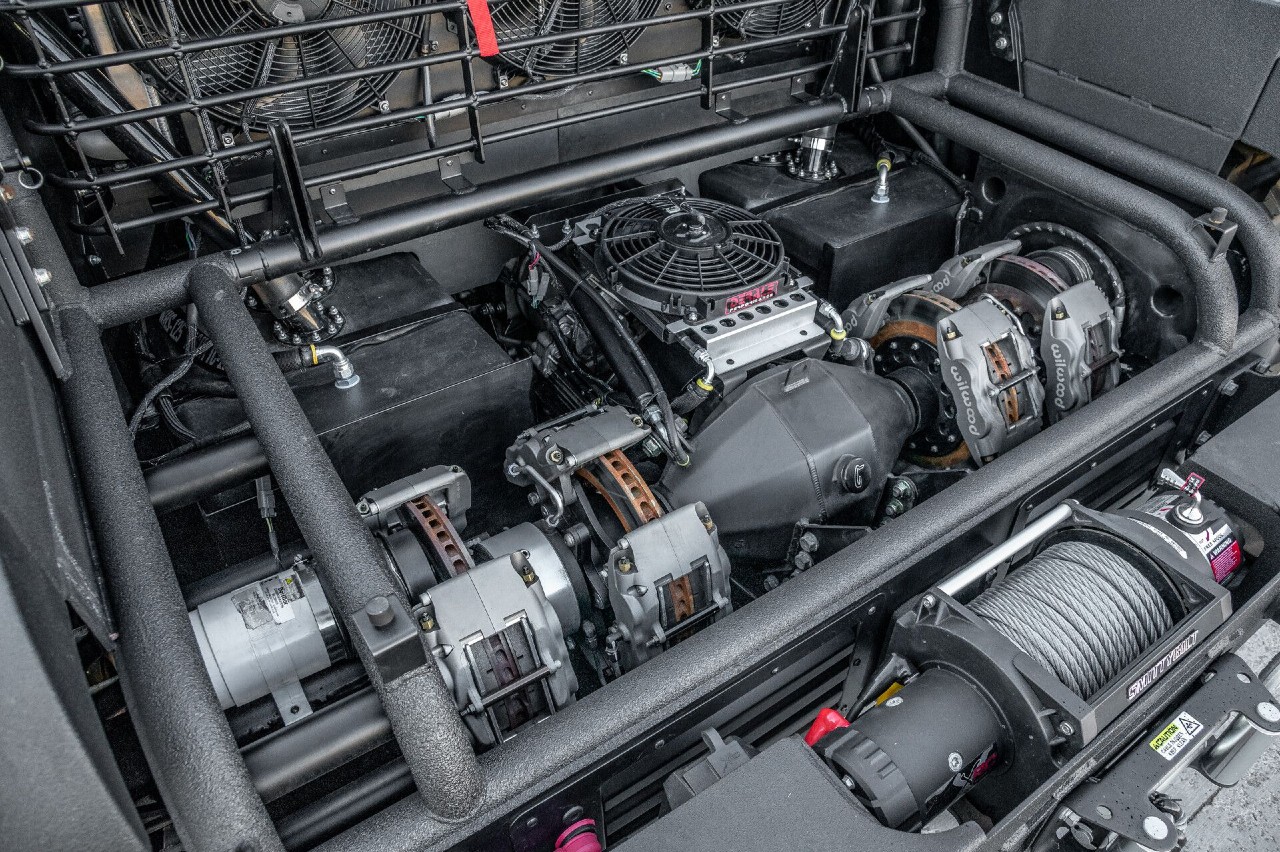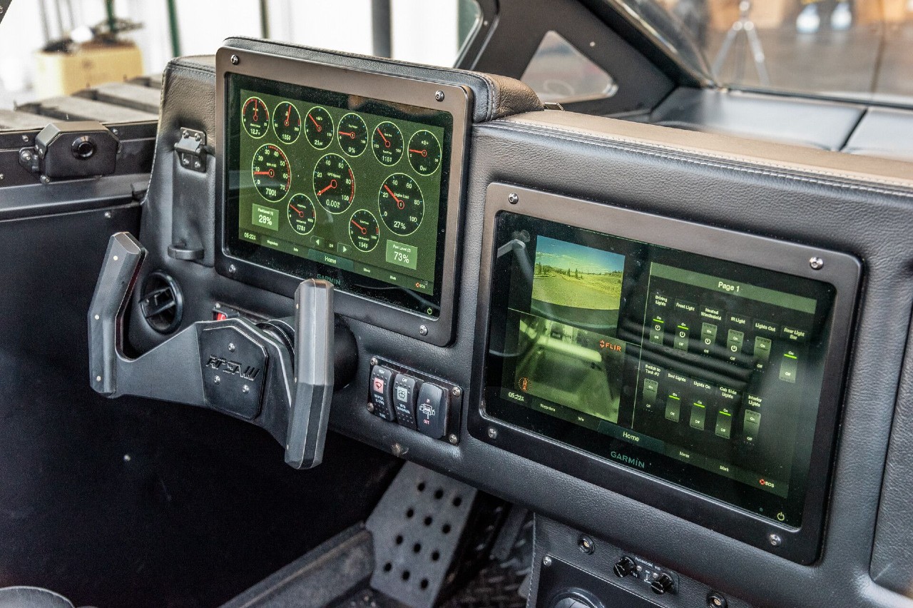 El interior ha sido diseñado para ser cómodo y lujoso, equipado con asientos Recaro de cuero con calefacción y refrigeración, un sistema de aviación Bose y dos pantallas digitales Garmin de 12 pulgadas cada una, que albergan las funciones más importantes del tanque. Fuera, incluye iluminación LED, un parabrisas térmico, una barra de luz infrarroja, un foco de lago alcance, cámara FLIR de larga distancia, un cabrestante y espacios de carga estancos.