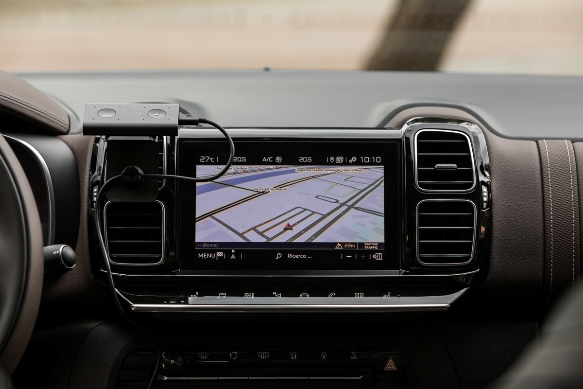Este pequeño dispositivo, de 85x47 mm con un soporte específico para el coche, cuenta con un conjunto de ocho micrófonos diseñados para responder a las exigentes condiciones acústicas del coche, lo que permite que Alexa escuche los comandos por encima del sonido de la música, el aire acondicionado y el ruido ambiental de la carretera. Se alimenta a través de la toma de corriente de 12V del coche, o mediante el puerto USB integrado, y se puede conectar al equipo de sonido a través de una toma de audio de 3,5 mm o vía Bluetooth.
