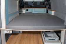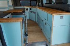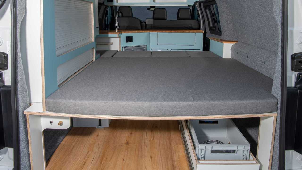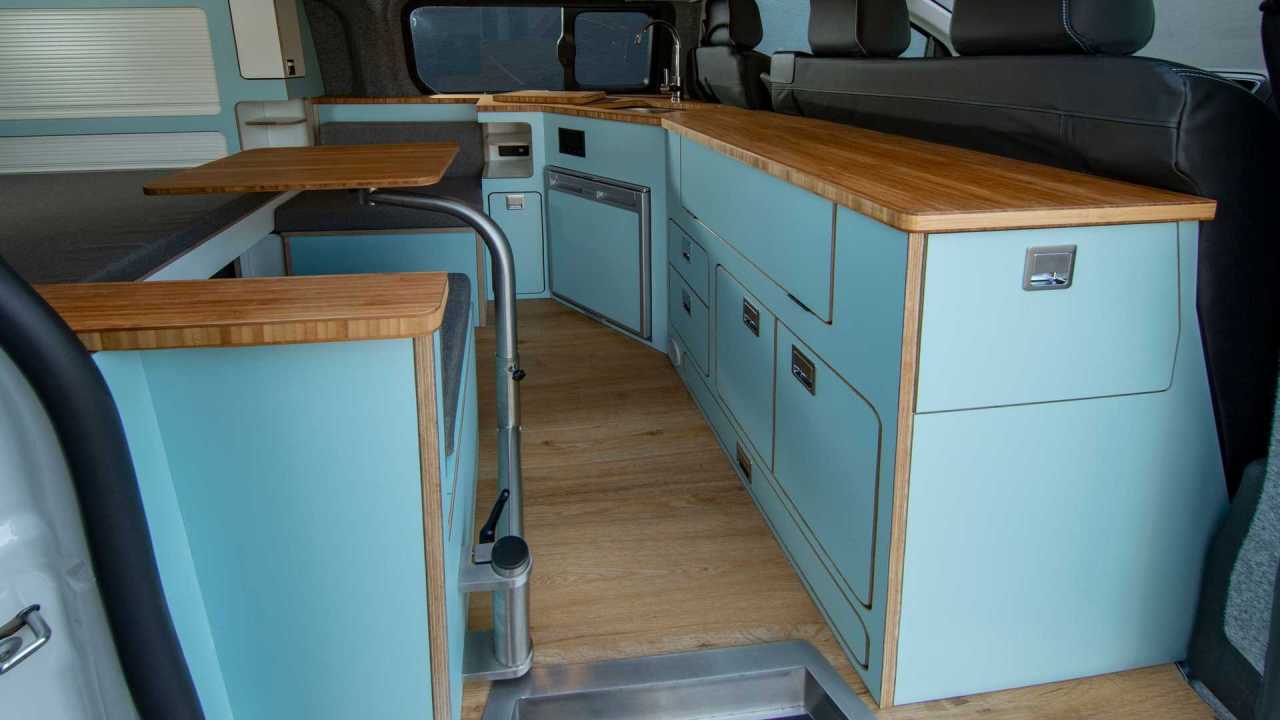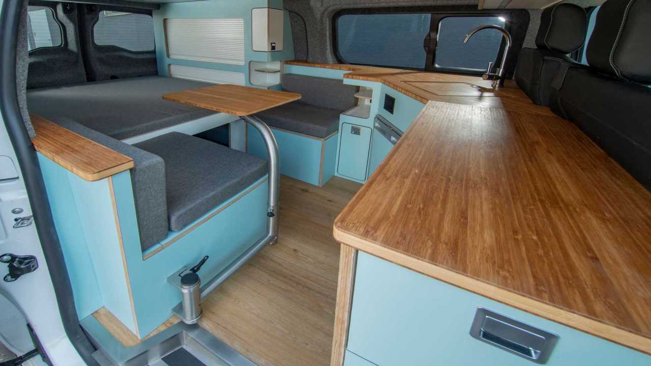 El interior también recibe algunos cambios significativos. La Irmscher Cross iS2 integra una cocina en forma de L con fregadero, frigorífico y encimeras de bambú. Muchas de las superficies han sido terminadas en un característico y llamativo tono de azul, aunque los compradores tienen más opciones de color disponibles.