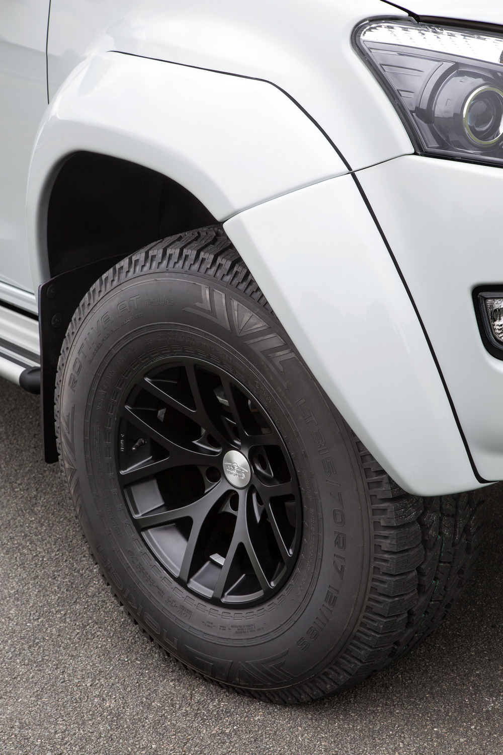 Pero la estrella de esta preparación oficial son sin duda los enormes neumáticos Nokian Rotiiva AT, que con su gigantesco diámetro de 35 pulgadas, mejoran la capacidad de agarre del Isuzu D-Max Arctic Trucks AT35 en las condiciones más extremas. Para acomodar estas ruedas, han tenido que incorporar unos aletines adicionales, lo que al mismo tiempo también altera de forma sustancial la imagen del pick-up.