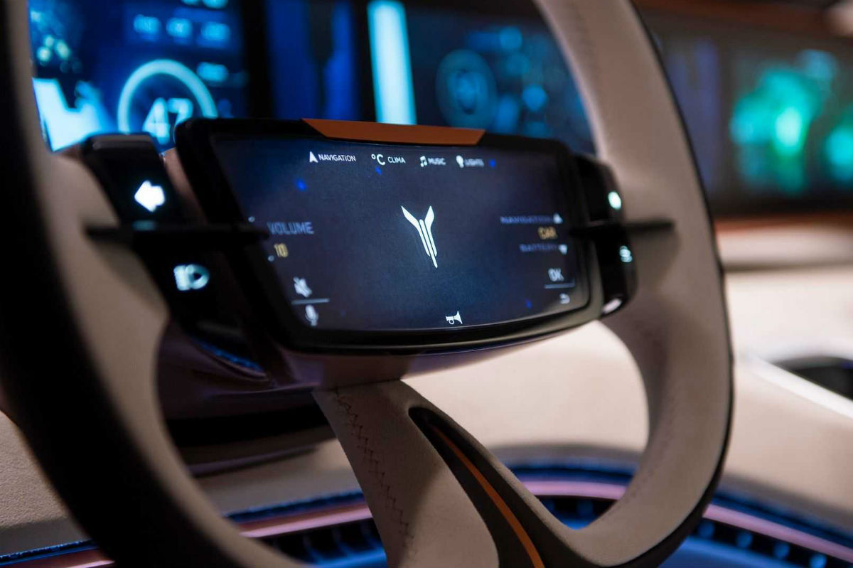 Sin embargo, uno de los elementos más destacados son las enormes puertas con apertura tipo alas de gaviota, que dan acceso a un amplio interior para cuatro ocupantes. Está presentes materiales de primer nivel y el cariz tecnológico lo proporcionan las tres pantallas que ocupan todo el ancho del salpicadero, así como una cuarta integrada en el propio volante.