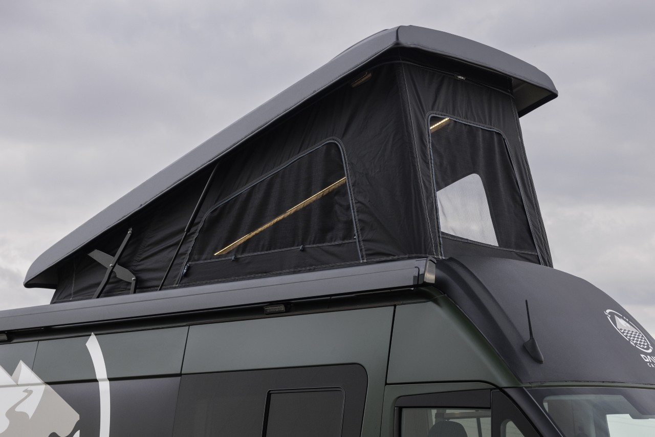 Siendo un vehículo de tamaño considerable, pues tiene una longitud de 6,10 metros y ofrece 12 metros cúbicos de espacio interior, ahora puede tener todavía más espacio, ya que opcionalmente puede instalar un techo elevable hecho de fibra de vidrio.