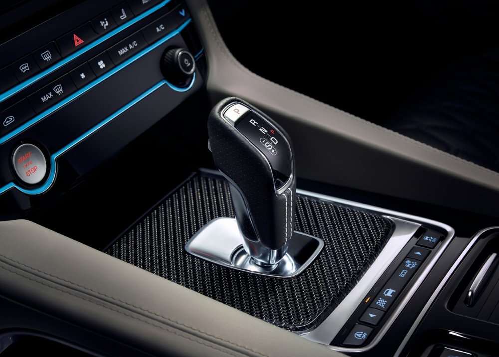 También promete un sonido a la altura de un V8 gracias a un sistema de escape activo con válvula variable de Jaguar que es 6,6 kilogramos más ligero que el escape estándar. Otros cambios presentados en el chasis son una suspensión más rígida, llantas de aleación ligera forjadas de 21 y 22 pulgadas opcionales, un ancho de vía trasero 25 mm mayor que el delantero, y discos de freno delanteros de 395 mm. Un diferencial activo electrónico trasero, un sistema de tracción total optimizado y una dirección electrónica para mejorar sus dotes de conducción.