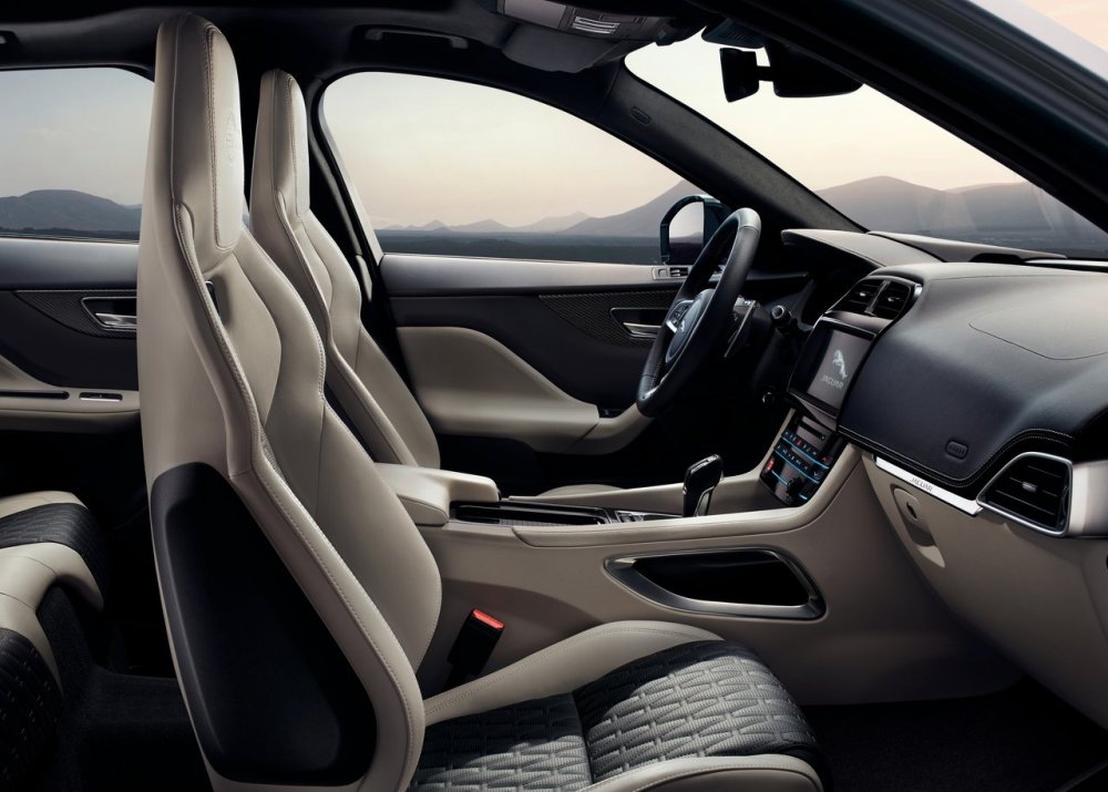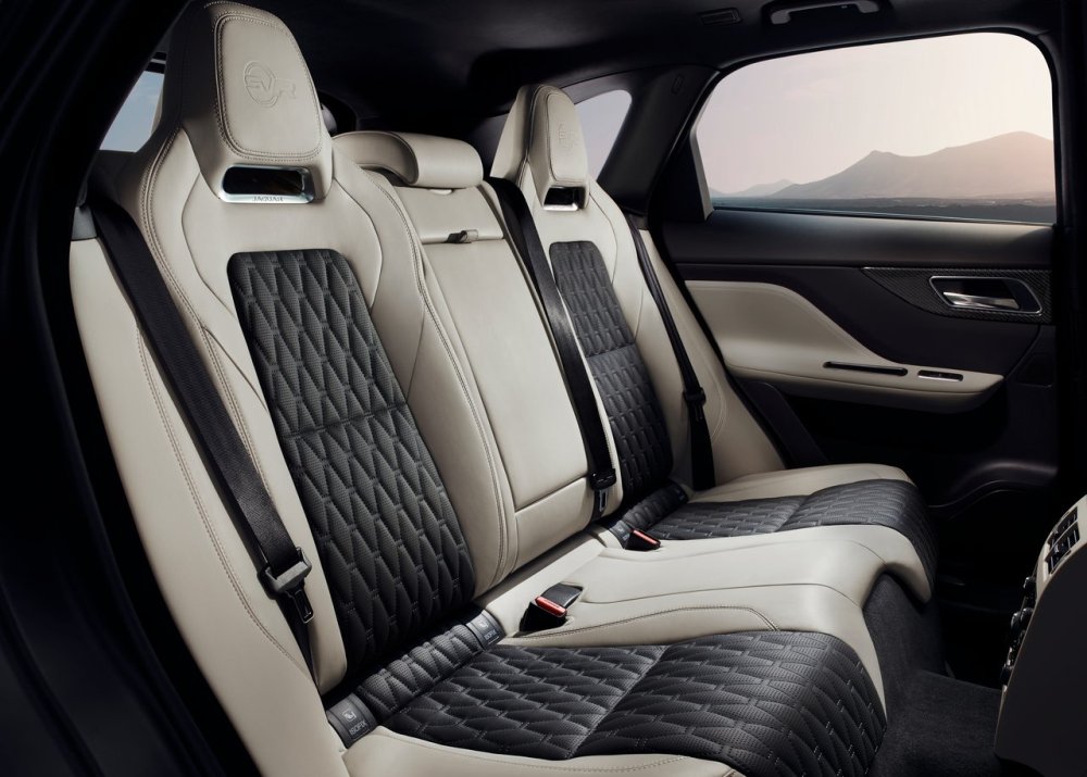 El interior del Jaguar F-Pace SVR también recibe mejoras, como unos asientos delanteros de corte deportivo con una tapicería específica y el logotipo ‘SVR’ en relieve, los asientos traseros imitan a los delanteros, tenemos un selector de cambio deportivo en la consola y un volante con el emblema SVR y levas para el cambio en aluminio. Un sistema de información y entretenimiento Touch Pro de serie con pantalla táctil de 10 pulgadas y un cuadro de instrumentos digital de 12,3 pulgadas también están disponibles.