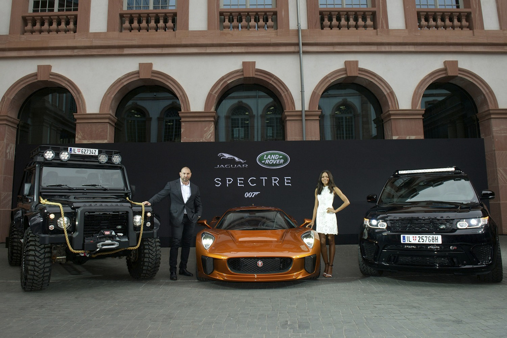 No todo lo que se presenta en el Salón de Frankfurt 2015 son futuros modelos de producción o espectaculares prototipos, también hay espacio para por ejemplo, coches de película. Es el caso de Jaguar Land Rover, que aprovechando la celebración de este evento ha presentado una pequeña muestra de los coches de la próxima película de James Bond, ‘SPECTRE’. En total, han sido tres los modelos que han puesto sobre el escenario: un Jaguar C-X75, un Land Rover Defender y un Range Rover Sport SVR.