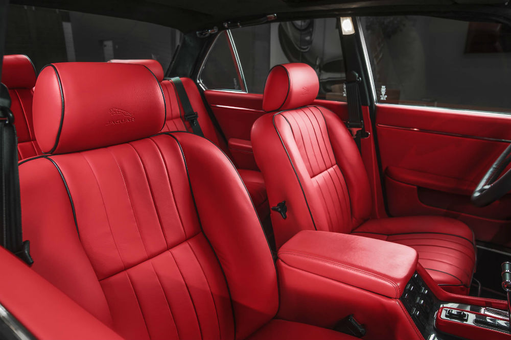 Y si el remozado exterior de este Jaguar XJ6 es importante, el interior incluso más. Los asientos tienen un mejor acolchado y están tapizados en cuero rojo, todo el habitáculo está repleto de detalles cromados, el volante de cuero es de tres radios, cuenta con un sistema de infoentretenimiento moderno con navegación y equipo de sonido de alto nivel, tiene cierre centralizado, luz ambiental, mejor aislamiento acústico y arranque por botón.