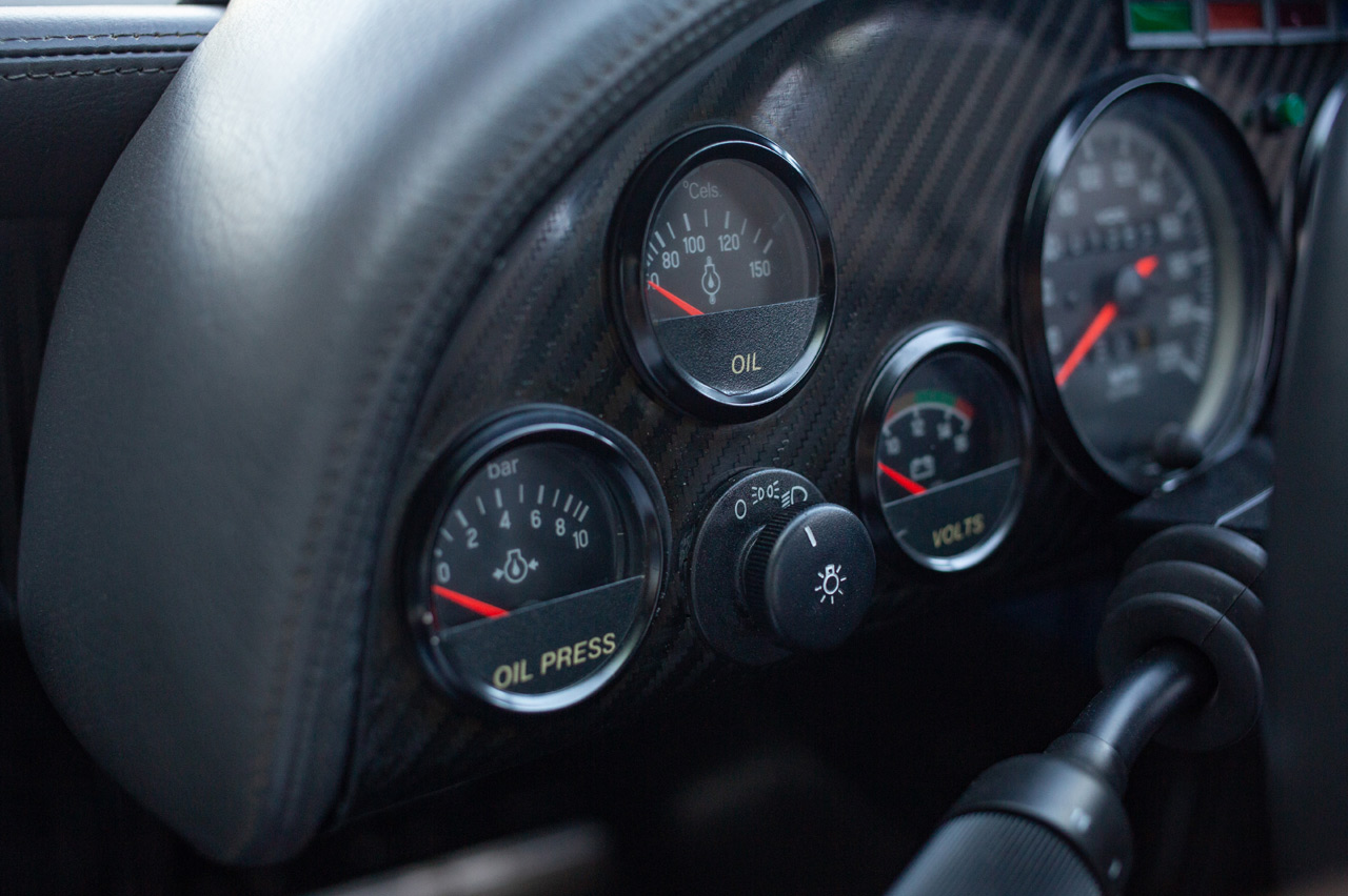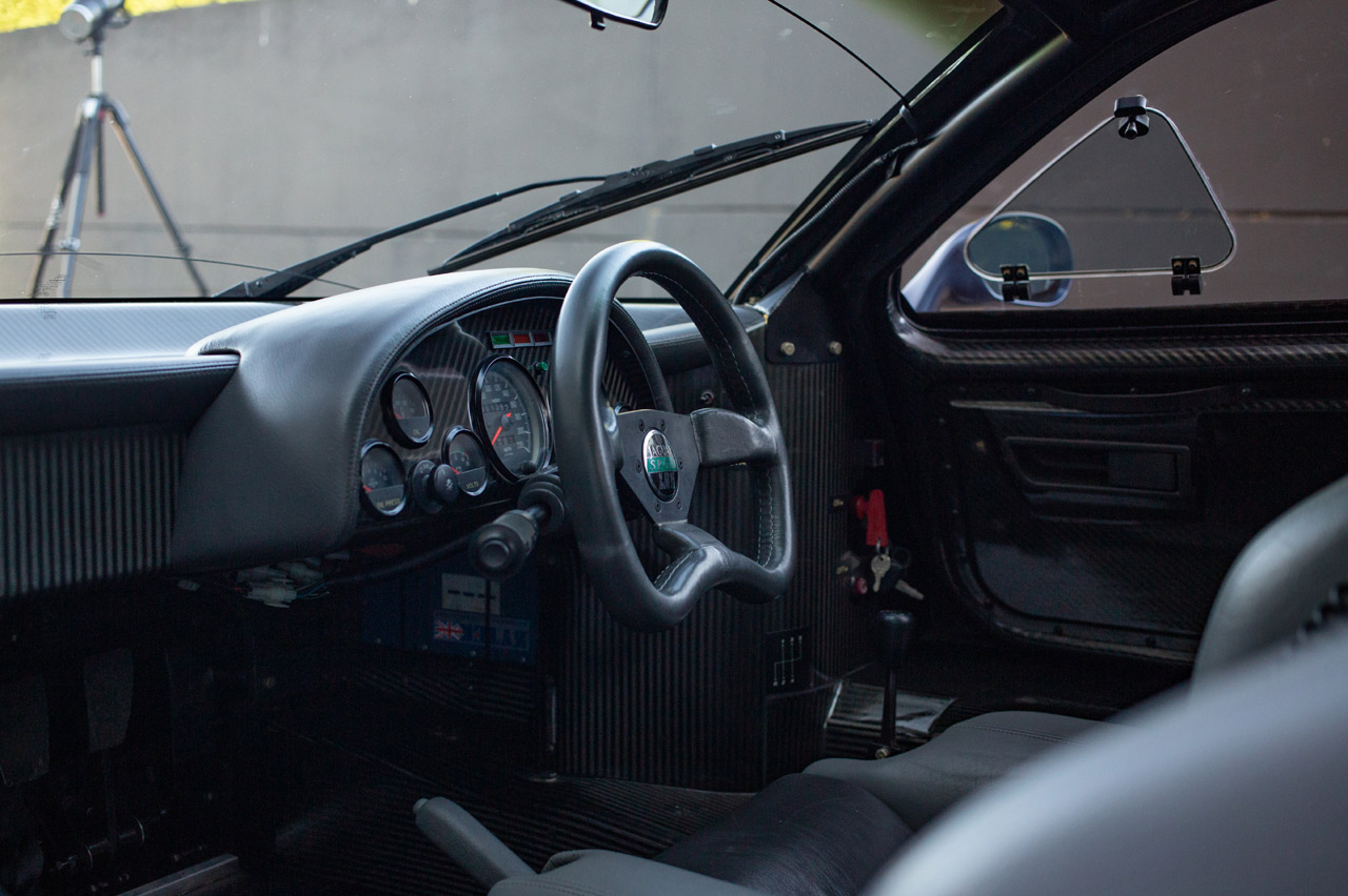 Un simple vistazo al XJR-15 es suficiente para darse cuenta de que este coche está más próximo a un bólido de competición que a un vehículo de calle al uso. Su diminuto habitáculo tiene asientos tapizados en cuero, pero no oculta sus orígenes con detalles como los múltiples relojes del cuadro de mandos o botones. También te puedes hacer una idea de la experiencia que debe ser conducir este aparato si te fijas en que está equipado con un sistema de comunicación para conductor y copiloto.