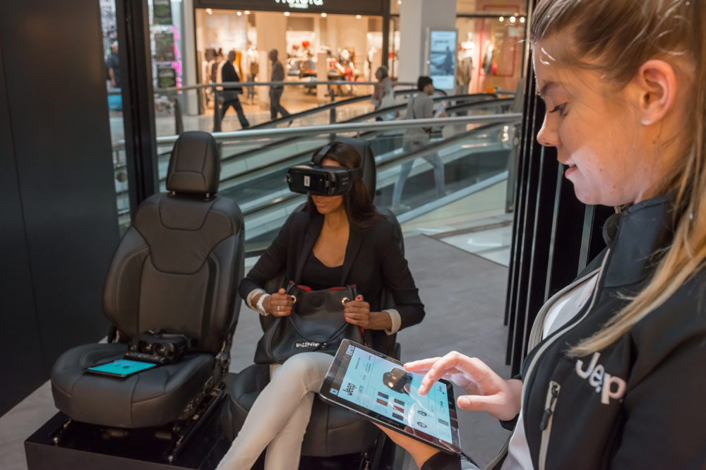 Este espacio, situado en el Centro Comercial La Vaguada, Madrid, y llevada a cabo por el concesionario Tayre, cuenta con 140 metros cuadrados para ofrecer una experiencia digital y sensorial, siempre acompañados por los expertos de la compañía. Por eso, a los visores de realidad virtual y el vídeo wall donde poder configurar el vehículo se unen una zona de Test Drive y dos modelos Jeep, un Compass (prueba), que estará expuesto de forma permanente, y otro que irá variando -ahora mismo es un Jeep Renegade (prueba)-.
