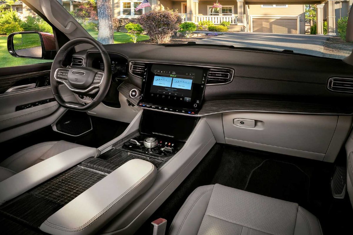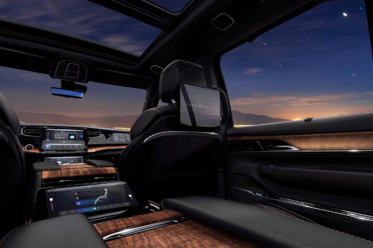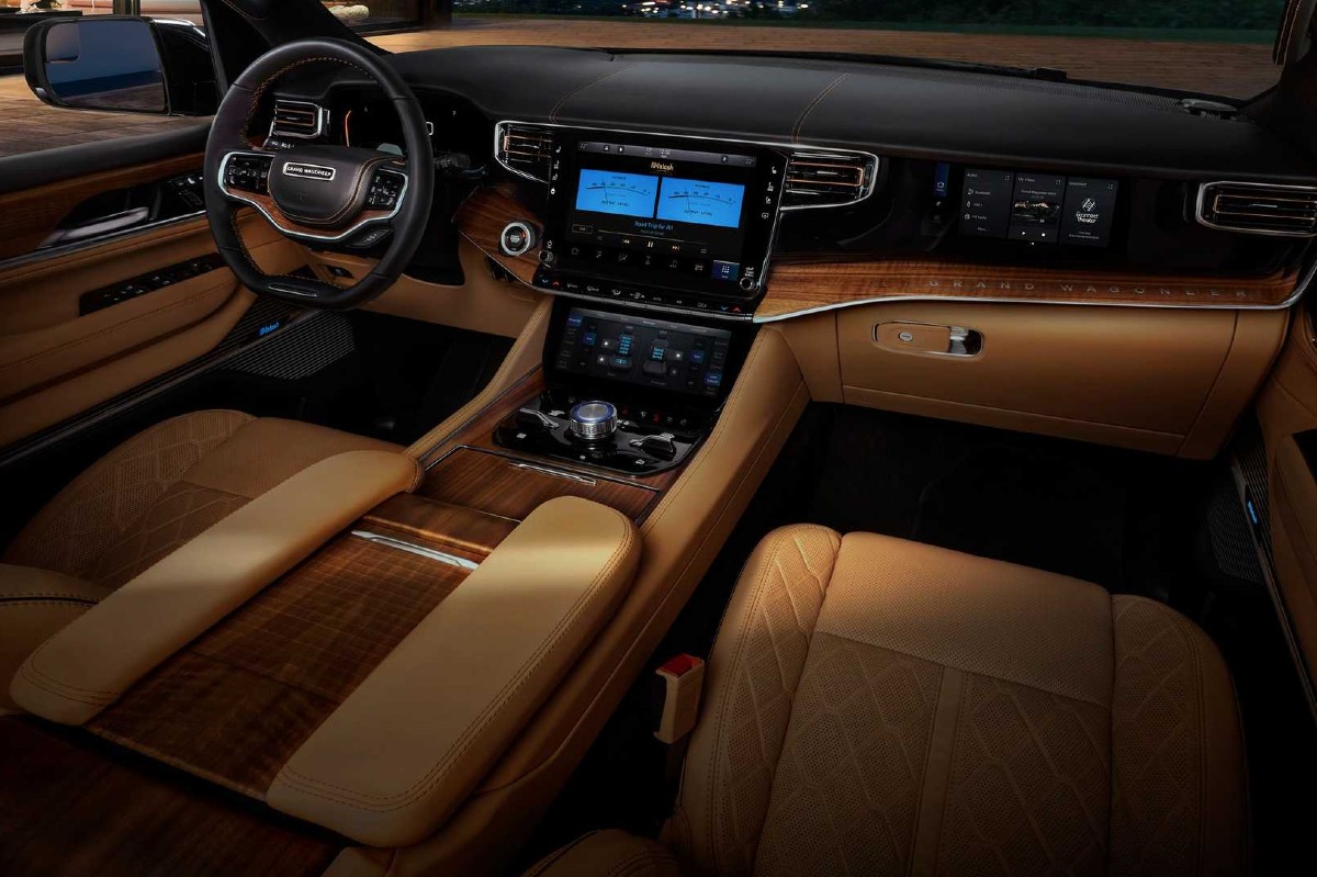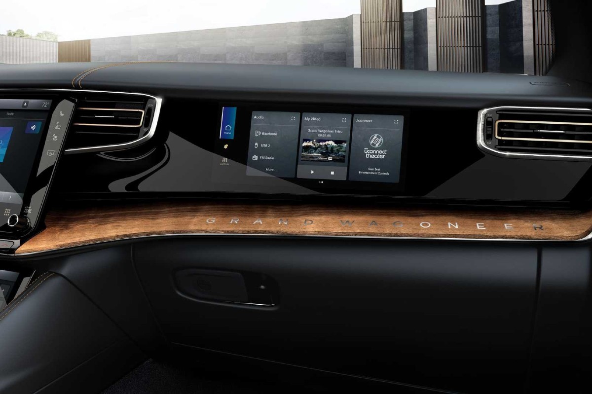 El interior es de calidad premium, contando con materiales como aluminio o madera y asientos de gran confort, sobre todo en la primera y segunda fila de asientos, aunque ésta puede reemplazarlos por un banco para aquellos que necesiten una configuración de ocho plazas. Ambas variantes cuentan además con un alto nivel tecnológico, algo que queda patente en la gran cantidad de pantallas que pueden montar: el cuadro de instrumentos digital de 10,3 pulgadas (12,3 en el GW) y la consola central de 10,1” (12” en el GW) son de serie, pero se puede sumar una tercera de 10,3” debajo de ésta y el Grand Wagooner puede añadir otra de 10,3 frente al copiloto, otras dos de 10,1” en los respaldos de los asientos delanteros y en los interior de 7 plazas, otra de 10,3 pulgadas entre las dos de la segunda fila.