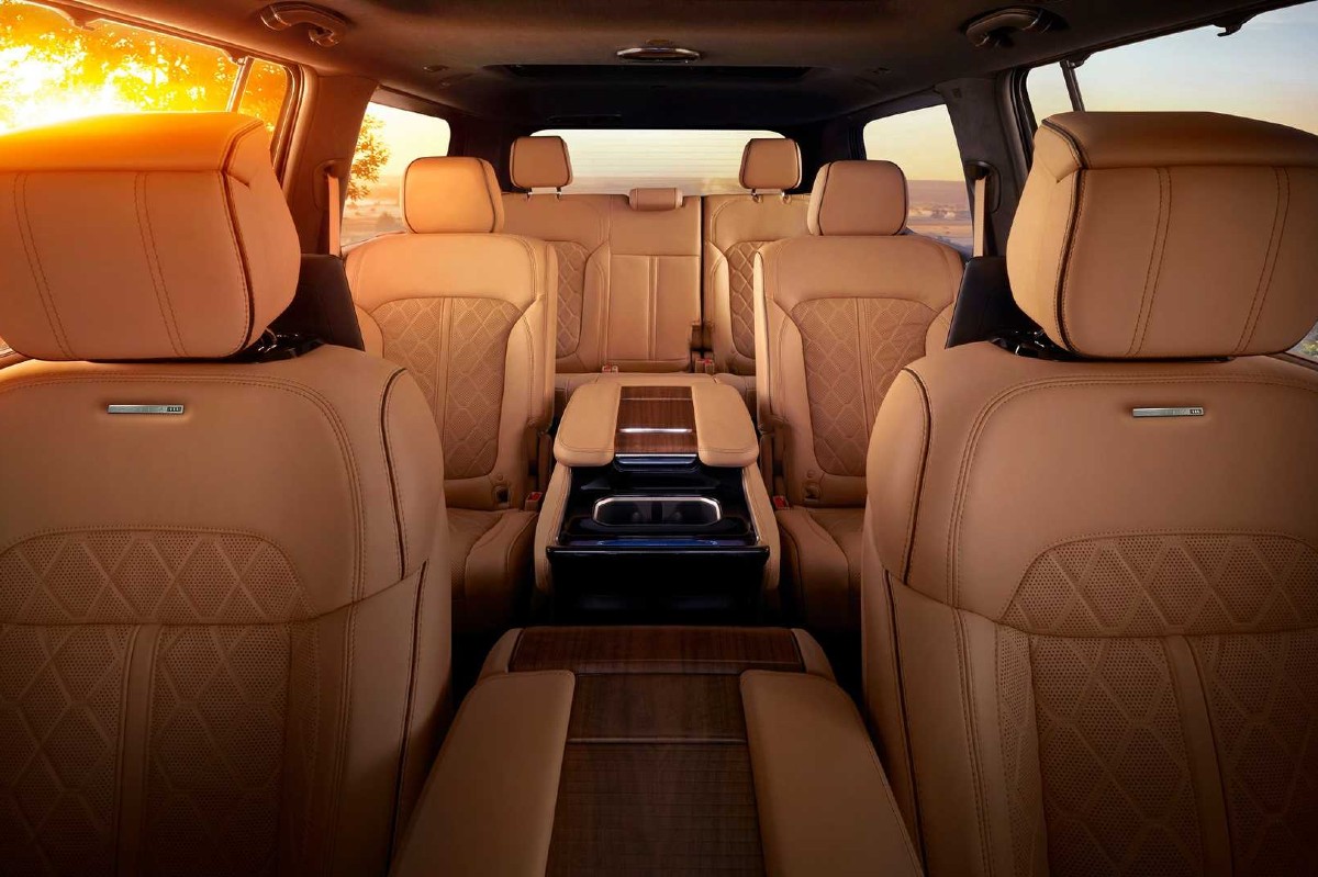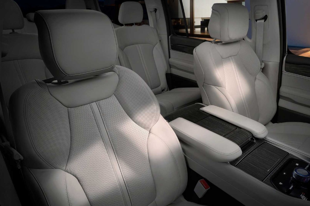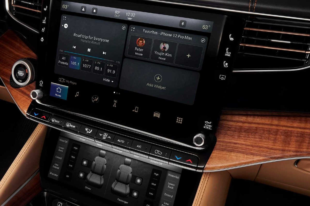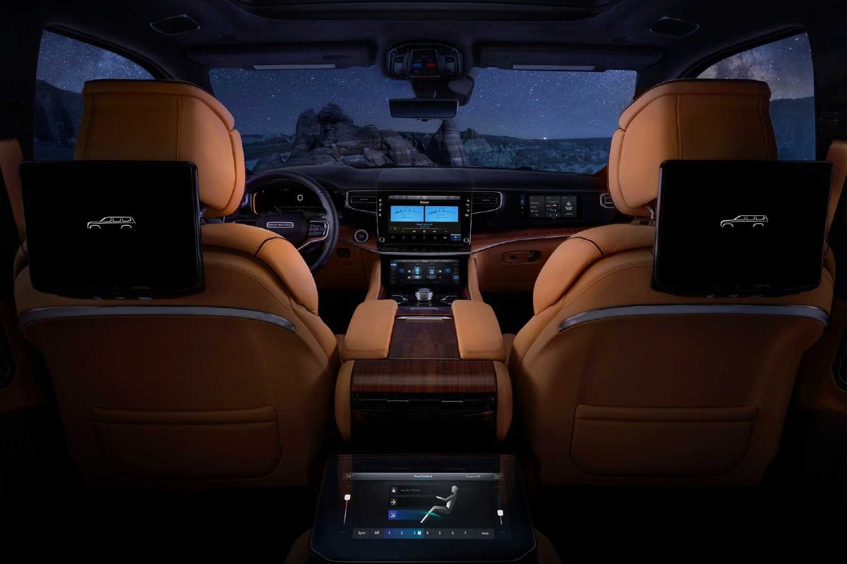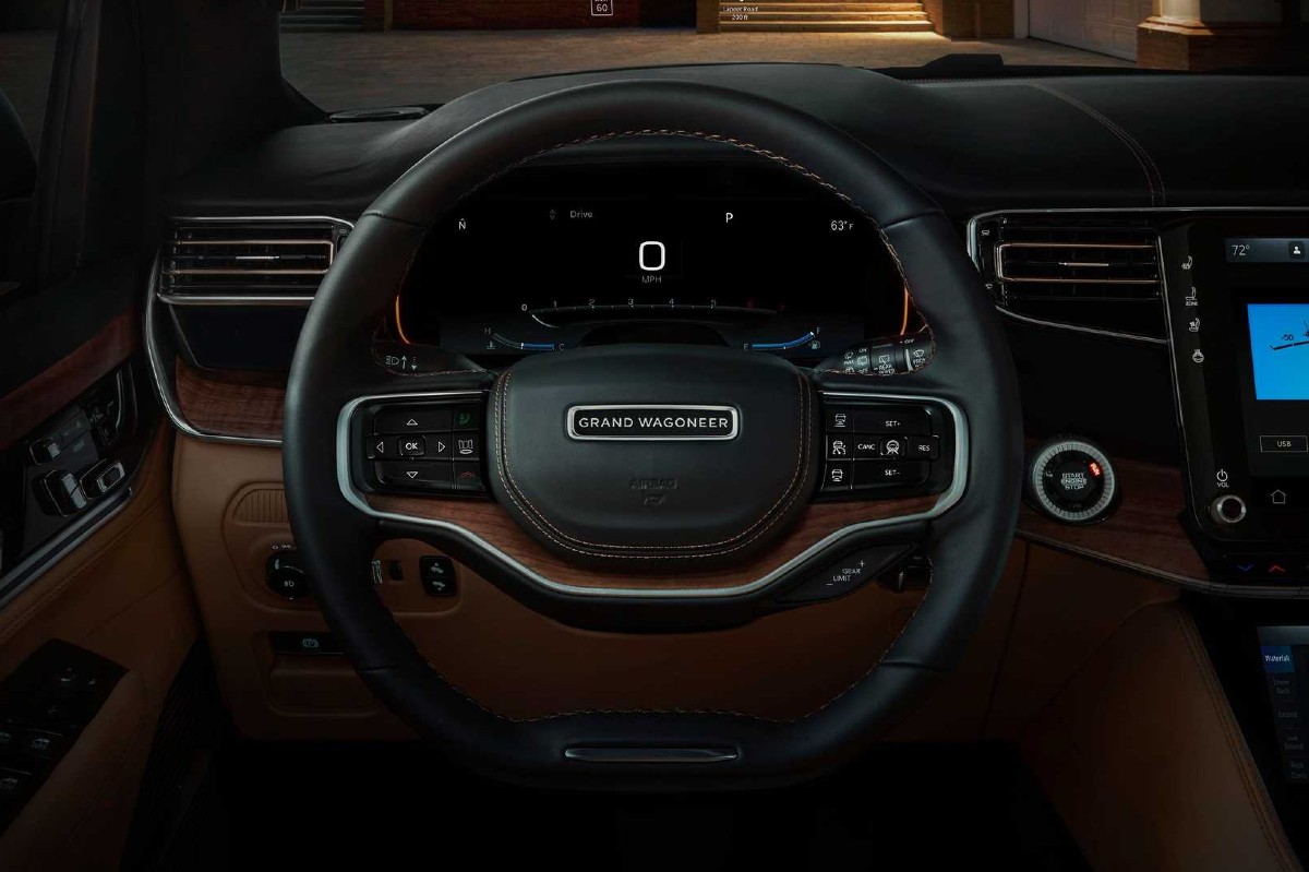 El interior es de calidad premium, contando con materiales como aluminio o madera y asientos de gran confort, sobre todo en la primera y segunda fila de asientos, aunque ésta puede reemplazarlos por un banco para aquellos que necesiten una configuración de ocho plazas. Ambas variantes cuentan además con un alto nivel tecnológico, algo que queda patente en la gran cantidad de pantallas que pueden montar: el cuadro de instrumentos digital de 10,3 pulgadas (12,3 en el GW) y la consola central de 10,1” (12” en el GW) son de serie, pero se puede sumar una tercera de 10,3” debajo de ésta y el Grand Wagooner puede añadir otra de 10,3 frente al copiloto, otras dos de 10,1” en los respaldos de los asientos delanteros y en los interior de 7 plazas, otra de 10,3 pulgadas entre las dos de la segunda fila.