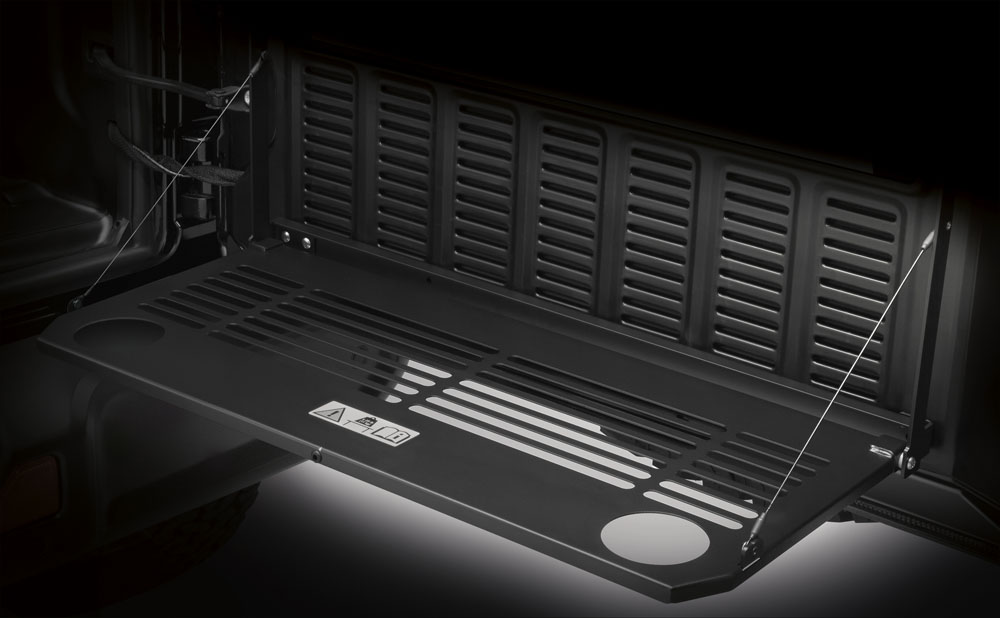 Se aprecia también la presencia de una nueva pantalla multifunción integrada entre los relojes del cuadro de mandos, de un sistema multimedia con un display más grande y mejor integrado en el conjunto. No cambia la ubicación de los controles de los elevalunas eléctricos, que continúan estando en la consola central, una zona donde ahora encontramos los controles para bloquear los diferenciales delantero y trasero además de para liberar la barra estabilizadora delantera (que antes se ubicaban a la izquierda y debajo del volante) y de un nuevo conjunto de pulsadores pensados para los accesorios que puedan instalar los usuarios, como faros adicionales o un cabrestante.