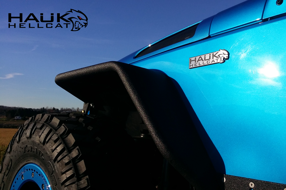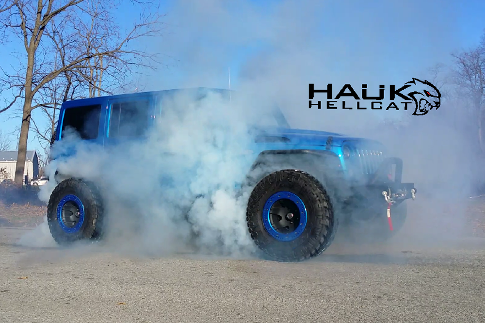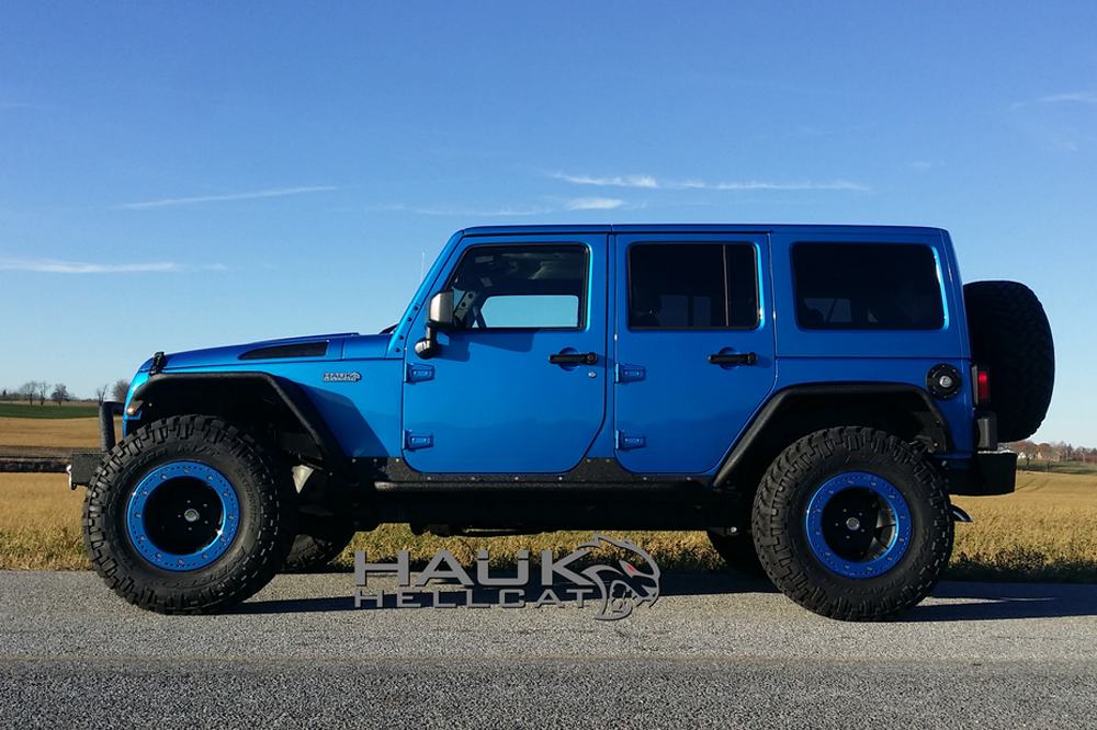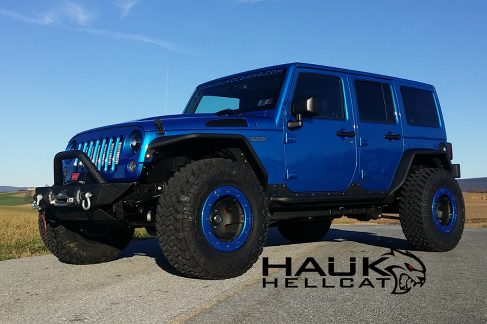 El Wrangler Hellcat de Hauk Designs, un pequeño taller estadounidense especializado en realizar todo tipo de transformaciones desarrolladas sobre la base del famoso 4x4 de Jeep, es una auténtica barbaridad. Está construido sobre la base de la variante más capaz (en términos 4x4) de la gama, el Wrangler Rubicon, que para la ocasión ha sido equipado con el colosal V8 de 6.2 litros con compresor volumétrico de Dodge, un bloque desarrolla una potencia máxima de nada menos que 716 CV y un par motor de 881 Nm.