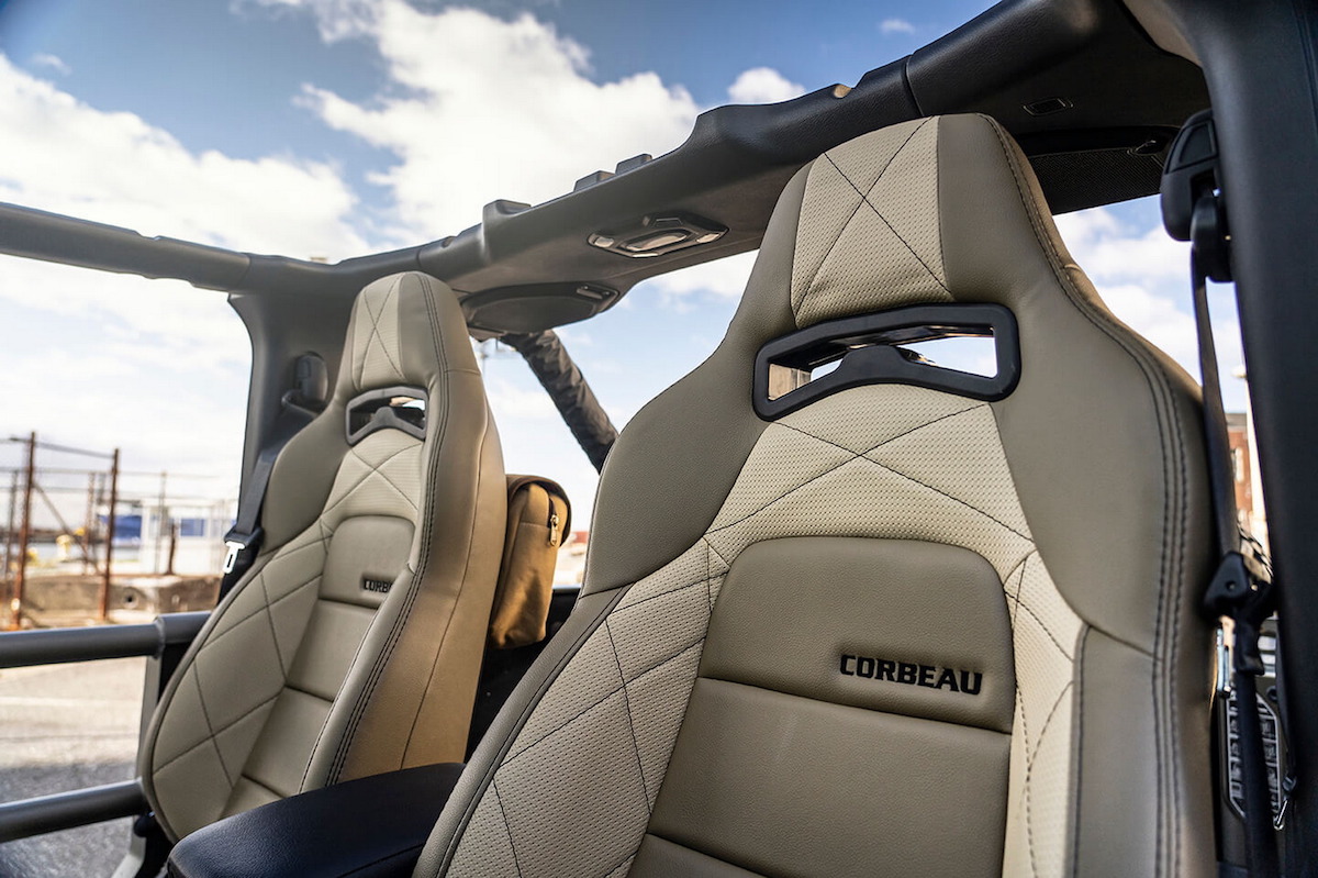 Por último pero no por ello menos importante, el habitáculo. Aquí, la firma americana ha optado por unos asientos tipo backet firmados por Corbeau, alfombrillas de goma y un sistema de infoentretenimiento Alpine que ofrece datos más concretos sobre la conducción off-road.