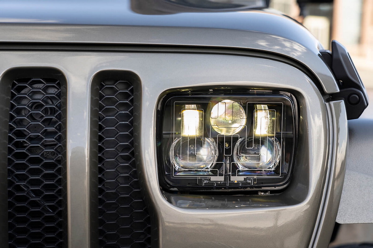 Lo que más llama la atención de este Wrangler es su frontal, donde ahora se asientan unos faros cuadrados como los de la primera entrega, aunque eso sí, con tecnología LED. También destacan unos pasos de rueda más elevados rematados en aluminio, los estribos laterales y una zaga sazonada con una doble salida de escape y una nueva defensa que también recuerda a la primera entrega del todoterreno americano.