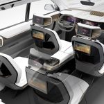 El habitáculo equipa elementos flotantes, como las tres filas de asientos, las dos primeras con banquetas independientes; la consola del túnel de transmisión y la consola central. Adereza el conjunto multitud de pantallas: tres en el salpicadero -cuadro de instrumentos, sistema de infoentretenimiento y información para el copiloto- y dos en cada asiento.