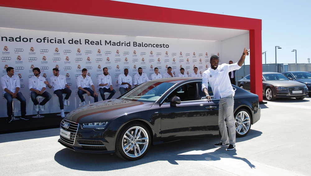 El estadio Alfredo Di Stéfano, situado en la Ciudad del Real Madrid de Valdebebas, ha sido el lugar elegido para la entrega oficial de los Audi A7 Sportback a los jugadores y para comunicar el nuevo acuerdo de patrocinio al que el fabricante de coches y el Real Madrid acaban de llegar y tendrá vigencia hasta 2018. "Hoy la sección de baloncesto también se siente fortalecida por la solidez y el prestigio de una marca indiscutible como Audi", declaraba Florentino Pérez en el acto de entrega de los vehículos.
