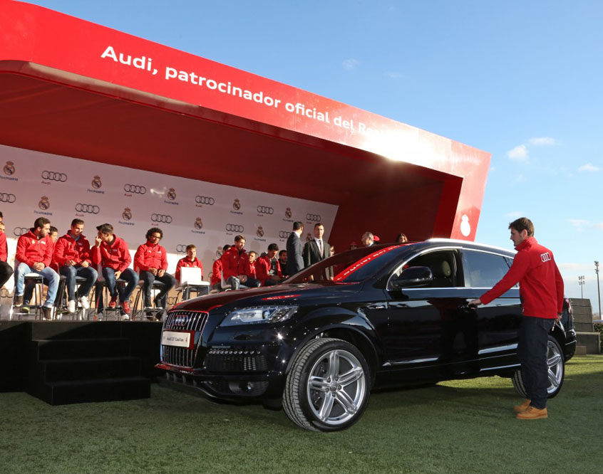 Los jugadores del primer equipo del Real Madrid y el entrenador han recibido hoy nuevos vehículos Audi que tendrán a su disposición hasta finales de 2014. Como viene sucediendo desde hace unos años, el director en España de la firma alemana, Guillermo Fadda, ha hecho entrega de los vehículos en un evento celebrado en el Hipódromo de la Zarzuela de Madrid.