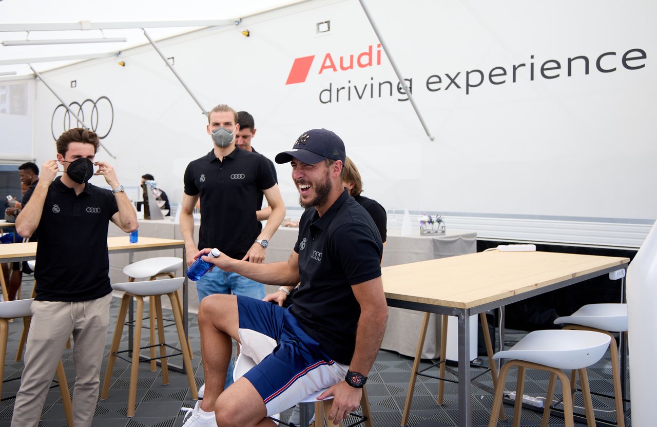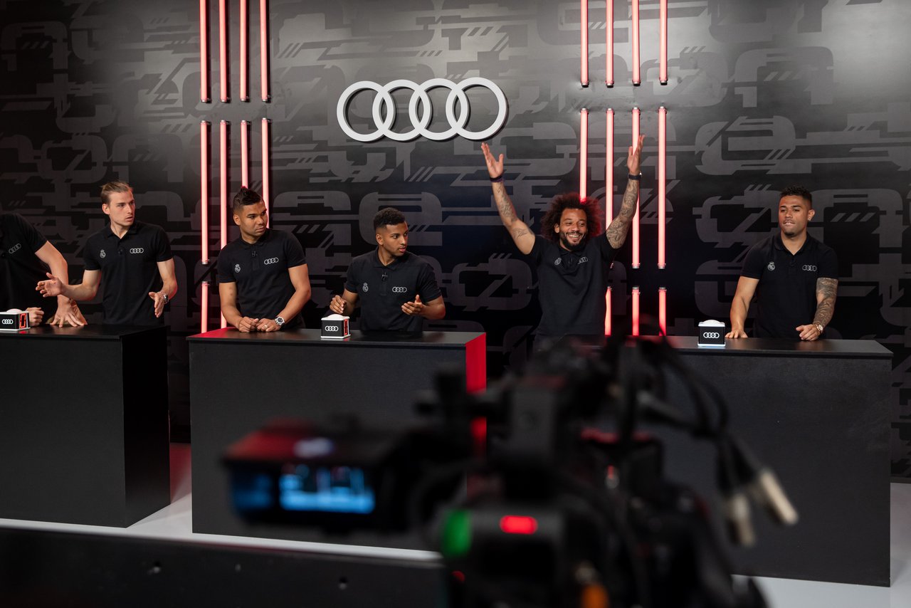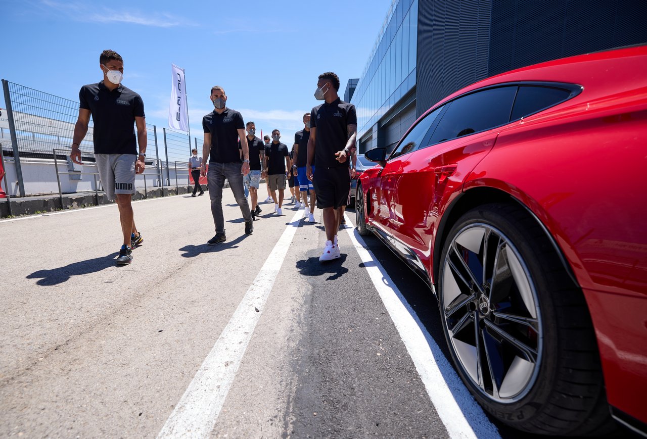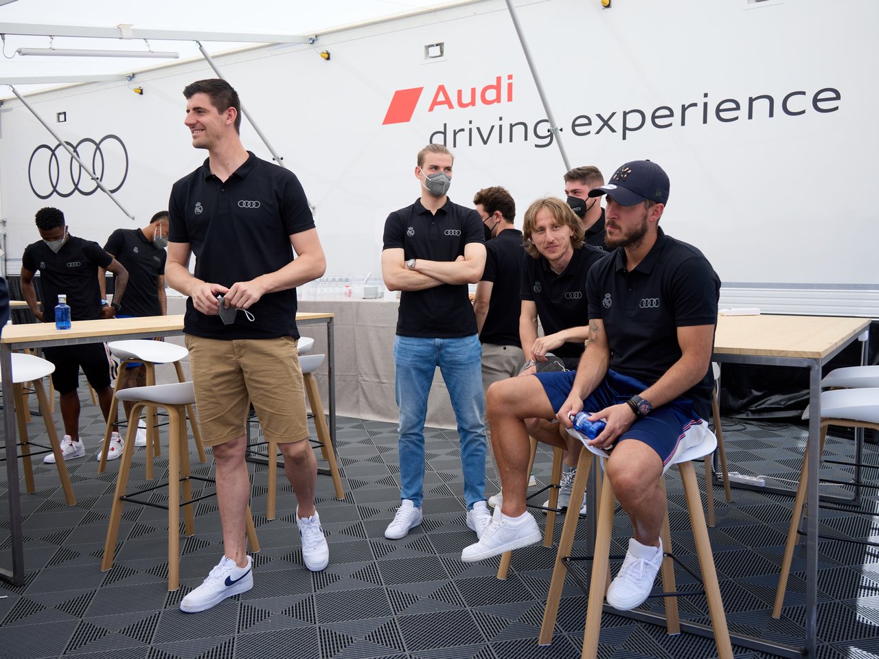 La primera plantilla del Real Madrid participó en diferentes pruebas de conducción e incluso en un juego en el que ponían a prueba sus reflejos. Según Audi, tras la jornada los jugadores comentaron de forma unánime su sorpresa por el rendimiento del Audi RS e-tron GT en circuito.