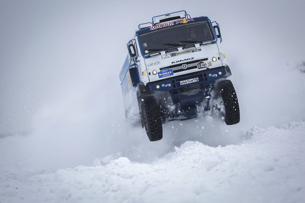 Nikolaev ha manifestado: “Para probar el camión fuimos a Kirov, en la región de Murmansk, a una de las regiones con más nieve en Rusia. Allí, justo hasta el final de la primavera, hay una gran cantidad de nieve profunda. Para nuestro KAMAZ-4326, estas condiciones son muy similares a la conducción en las arenas de América del Sur y África, y para el equipo, este es un gran entrenamiento para mejorar las habilidades de conducción en las dunas de la Seda”.