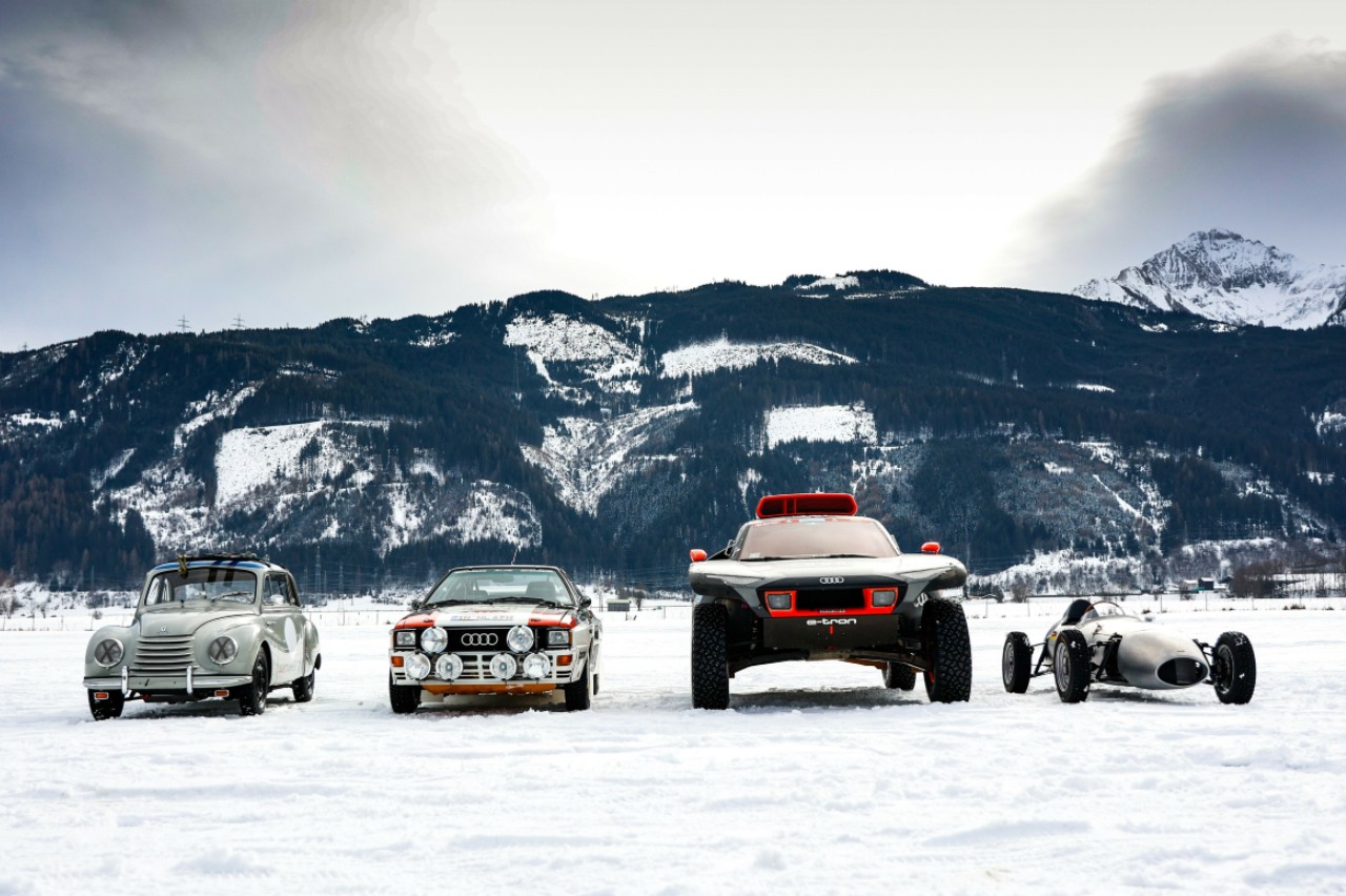 El RS Q e-tron fue solo una de las estrellas en el helado recorrido de Zell am See. Para este evento, Audi Tradition también desplazó el Audi quattro A2 Grupo B, que compitió en el Rally de Finlandia de 1983. También causaron sensación un DKW F 91 y un DKW Hartmann Fórmula V.