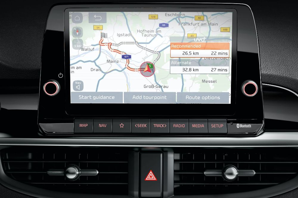 Cuando se trata del interior del nuevo KIA Picanto (prueba), encontramos una nueva pantalla táctil de 8 pulgadas más grande para el sistema de información y entretenimiento con navegación, acompañada de una segunda pantalla de 4,2 pulgadas integrada en el cuadro de instrumentos. El sistema de infoentretenimiento incluye conexión Bluetooth, Apple CarPlay y Android Auto, y UVO Connect.
