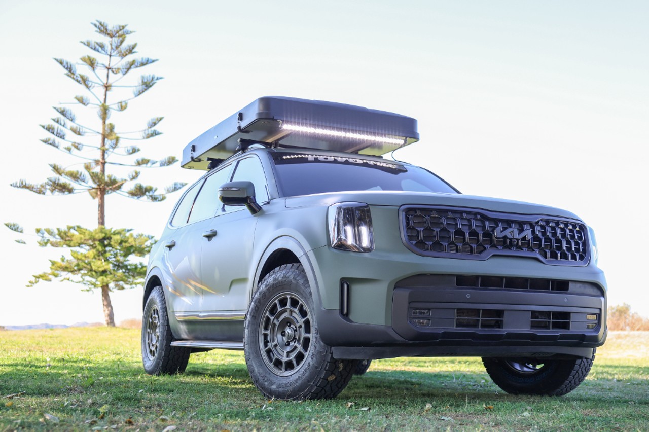 Aunque el mayor protagonismo lo acaparan los prototipos eléctricos, Kia ha presentado otros más cercanos a la realidad y con motores de combustión. Es el caso del Thetis Sportage, creado en colaboración con Rhino Rack. Está inspirado en el agua y cuenta con un revestimiento personalizado, detalles en oro rosa y llantas Fifteen52 con neumáticos Toyo. A ellas se une un soporte para kayak de Rhino Rack.