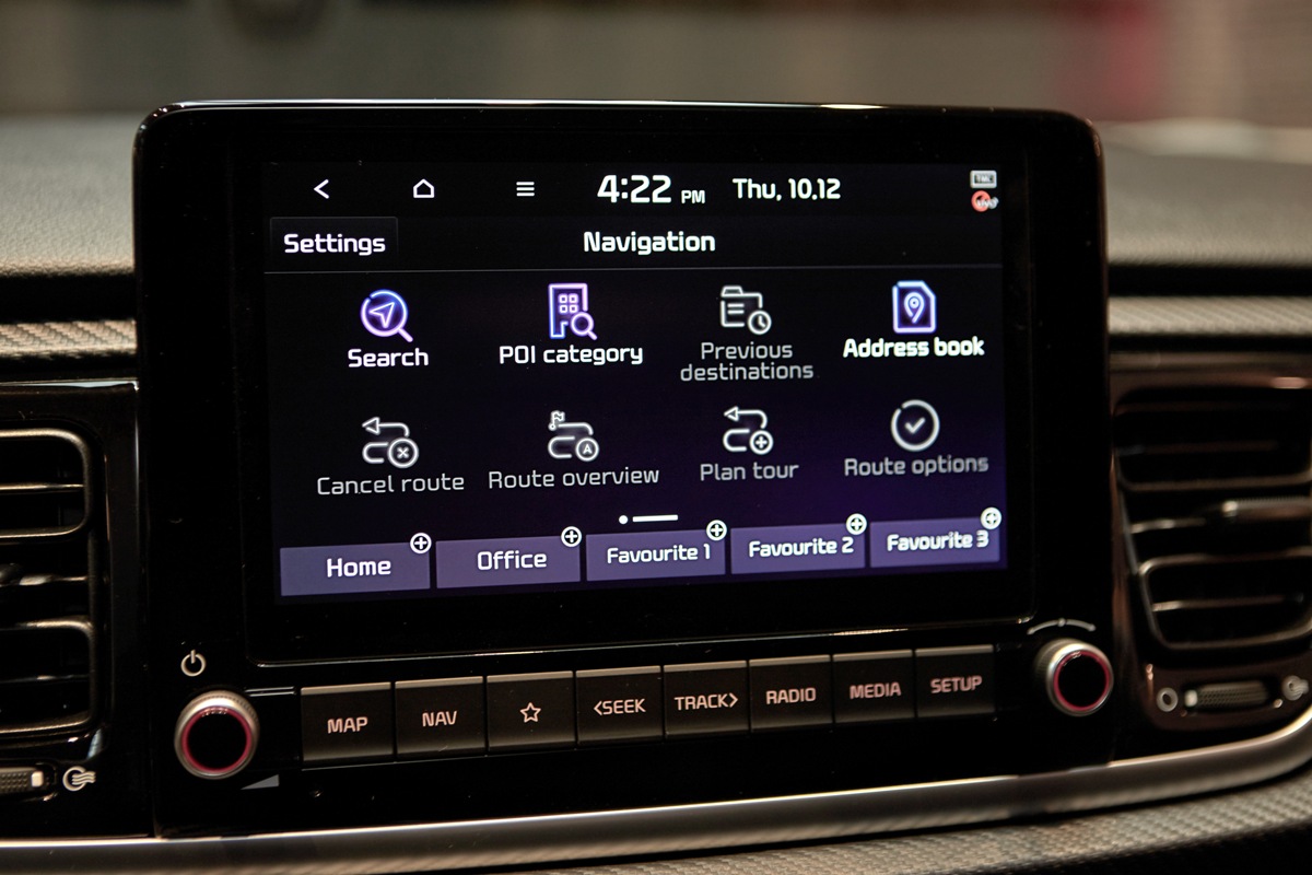 Entre la dotación tecnológica del Rio 2021 encontramos el sistema de infoentretenimiento UVO Connect Fase II que ahora integra una pantalla táctil mejorada de 8 pulgadas. Ofrece conexión Bluetooth múltiple, así como Apple CarPlay y Android Auto. También incluye información del tráfico en tiempo real, previsiones meteorológicas, puntos de interés, estaciones de servicio y precios del combustible, e información de aparcamiento en tiempo real. El sistema también cuenta con reconocimiento de voz online, así como la aplicación UVO para dispositivos móviles Android y Apple, con la que los usuarios pueden controlar y verificar diferentes funciones del coche.