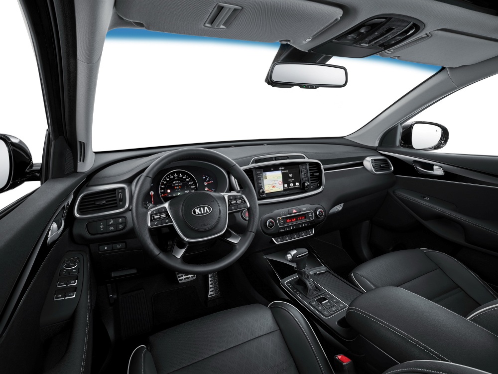 Otra de las novedades mencionables es la versión GT-Line de aspecto más deportiva para el nuevo KIA Sorento. Este nivel de acabado se beneficia de diferentes mejoras a nivel estético, como faros antiniebla con cuatro puntos de luz LED, pinzas de freno de color rojo, un escalón de acceso al habitáculo y una placa sutil ‘GT-Line’, mientras que las motorizaciones diésel añaden una salida de escape cromada. El interior, por su parte, añade asientos acolchados de cuero negro con costuras grises, levas del cambio tras el volante, inserciones cromadas y emblemas.